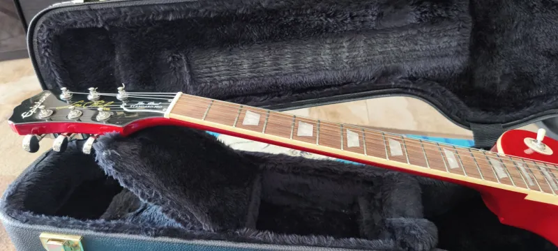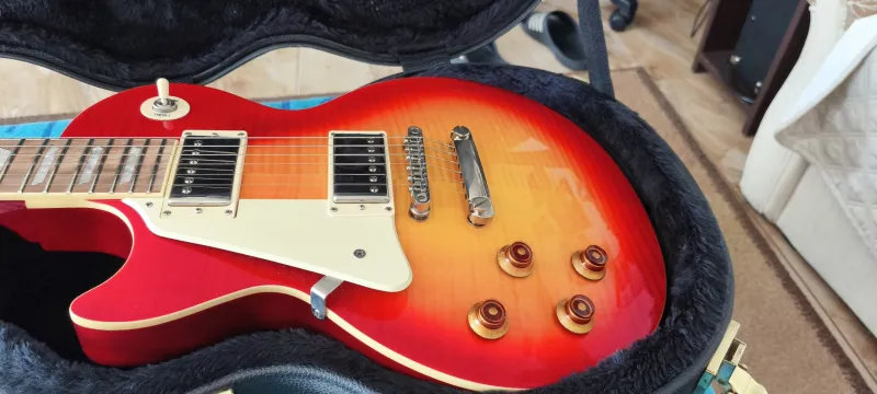2019ben Németországból vásárolt Balkezes gitár, kisebb karcolási nyomok a hátoldalon, eredeti alkatrészek, a hangerő gombokkal felezhetőek a Probucker 2 hangszedők. Grover hangológép, Tune-o-matic bridge, 22 medium frets, a hátoldalon kisebb karcolási nyomok láthatóak. Kemény tokot adok hozzá. Csere nem érdekel.Shipping