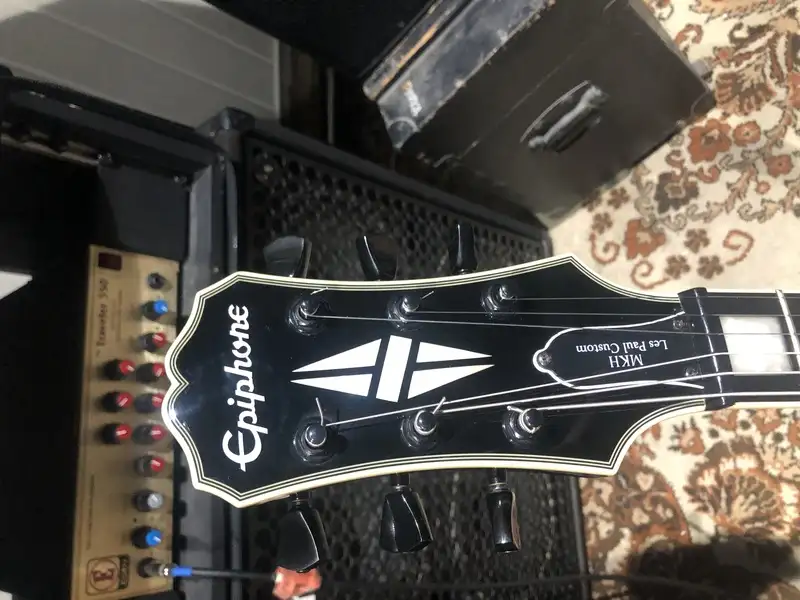 Eladó sorba került egy 2014-es ,Indonéziában gyártott Epiphone MKH - Matt Heafy Les Paul Custom, az első szériából. A nyak tövén a lakkréteg megrepedt, ill. a nyakon van egy benyomódás.Mahagóni test, juhar fedlap
