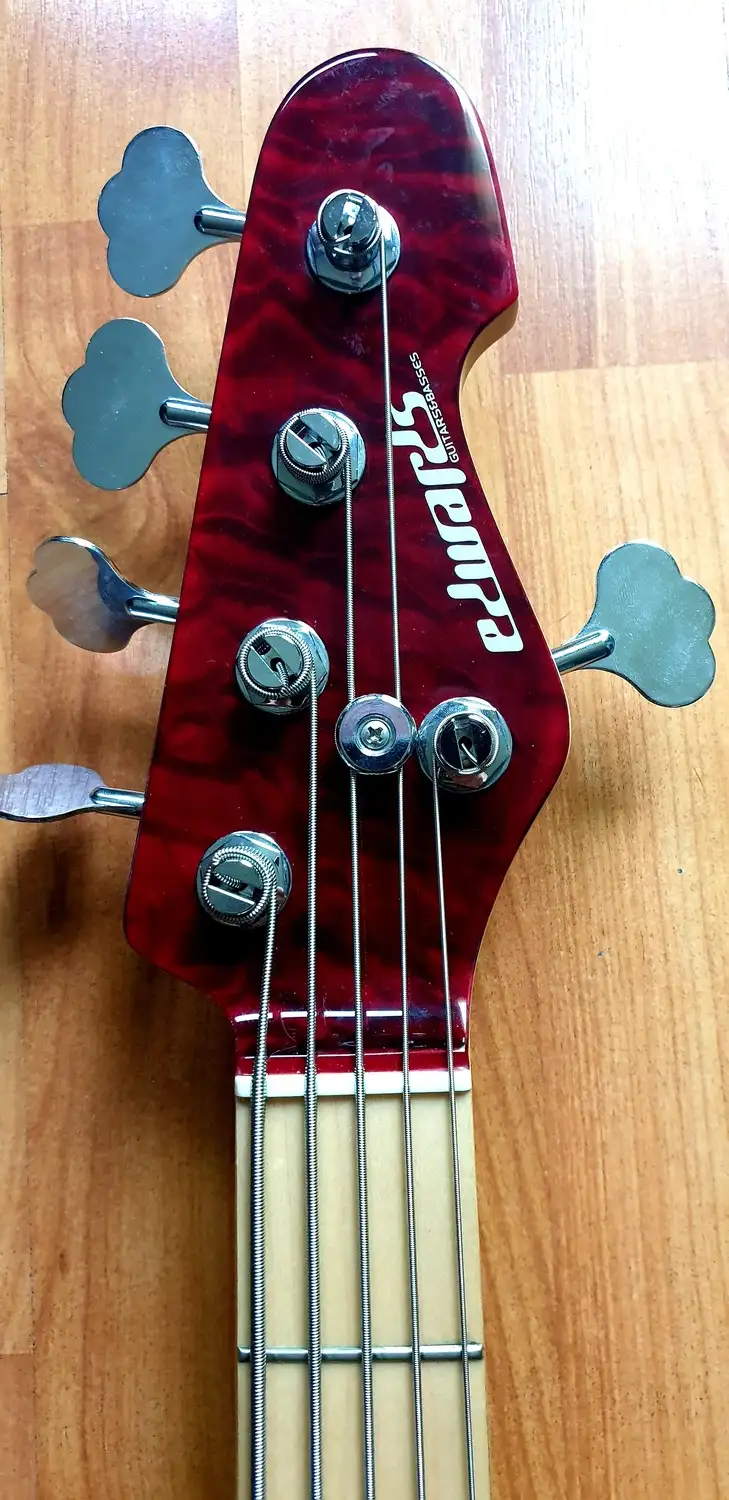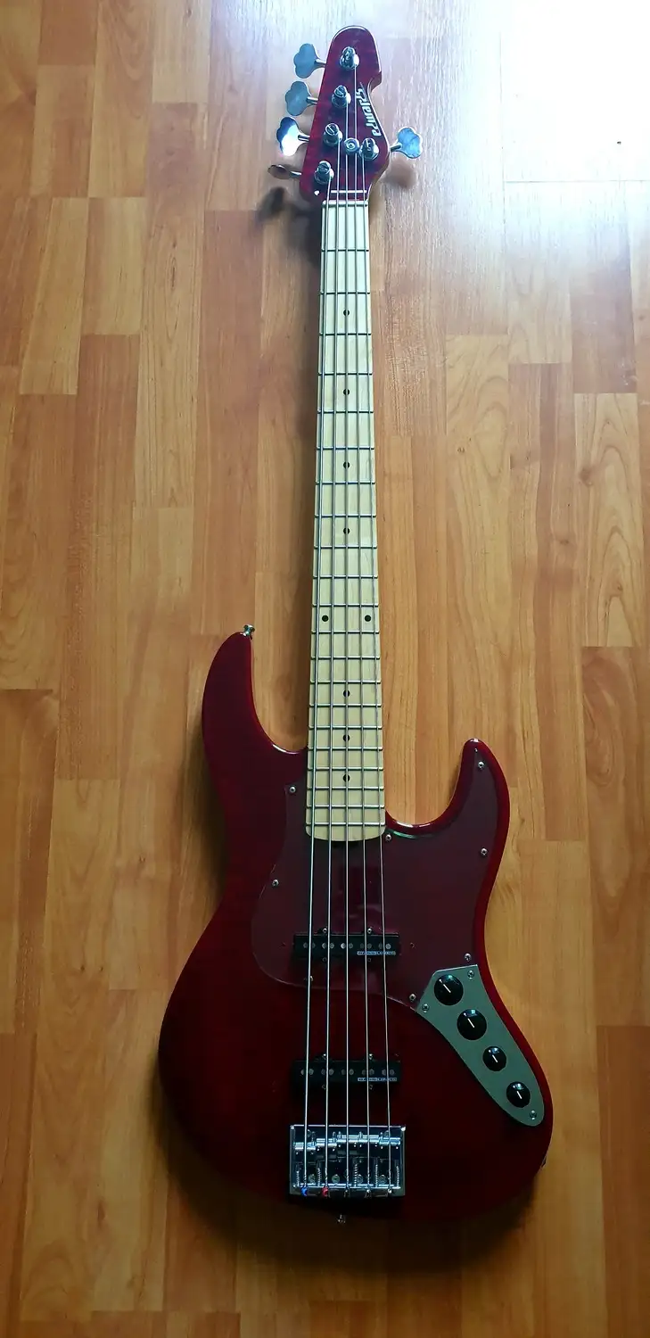 Eladó a képeken látható EDWARDS 5 húros basszusgitár.Kőris test, 35-ös jávor nyak, jávor fogólap. Habos jávor top.