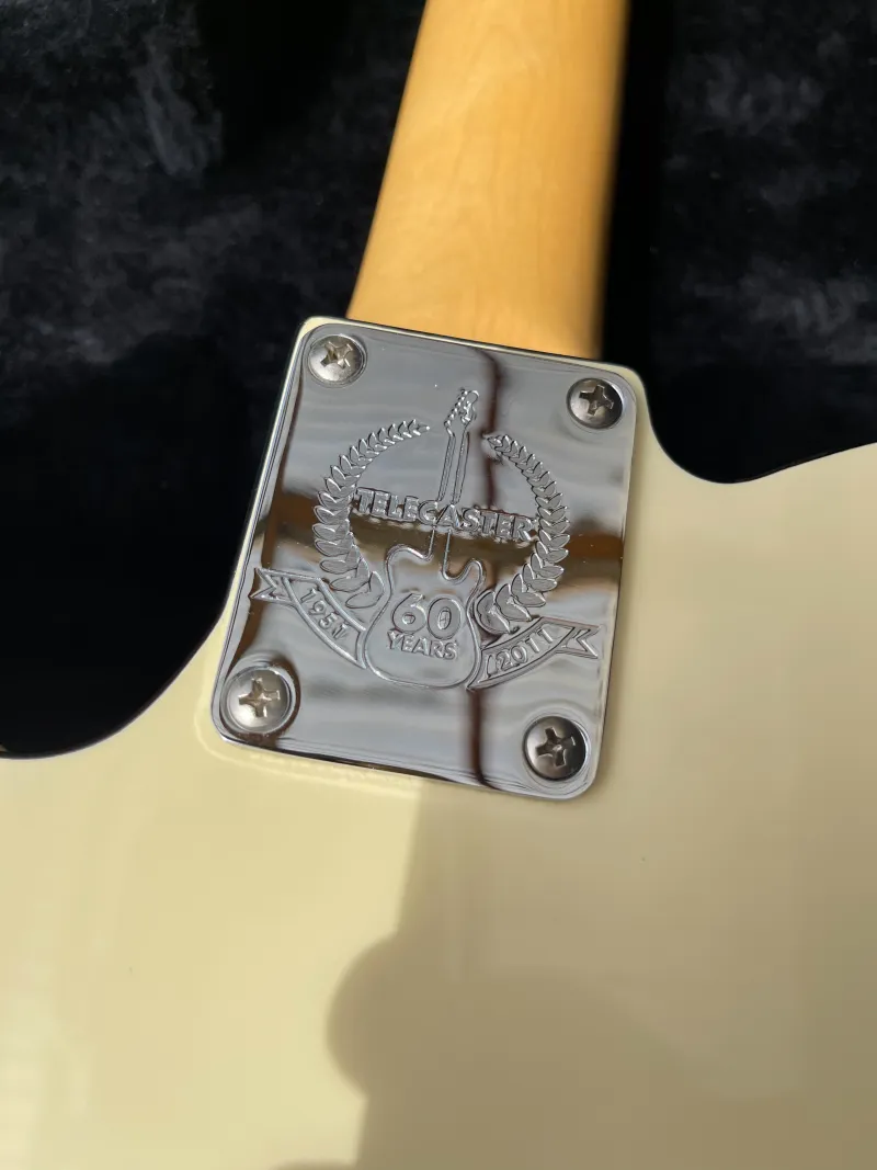 For sale is this collectible and rare beauty, the 2011 American 62 custom tele from the limited edition Tele-bration. This US series was only produced between 2011-12, made for the 60th anniversary of the telecaster in beautiful Olympic White with a White Pearloid Block. This is a reincarnation of this model, exactly as it was produced in the sixties. Historically accurate alder body, bounded top and back, maple neck (C profile but very nice), rosewood ``slab`` board, 7.25`` radius, American Vintage `62 Custom Single-Coil Tele pickups, vintage Kluson Deluxe -style tuning mechanics. The whole instrument is finished in NITRO!! The guitar is in mint condition, all original, set-up, 10/10 frets, tags, case candy, strap, and deluxe G&G fender case included.For sale only, shipping from the Czech Republic, fully insured