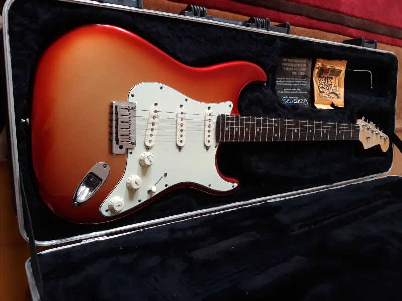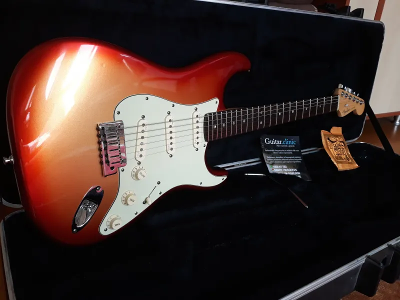 Fender Anerican Deluxe Stratocaster Sunset Metallic színben eladó.A hangszer patika állapotban van, eredeti Fender keménytok jár hozzá.