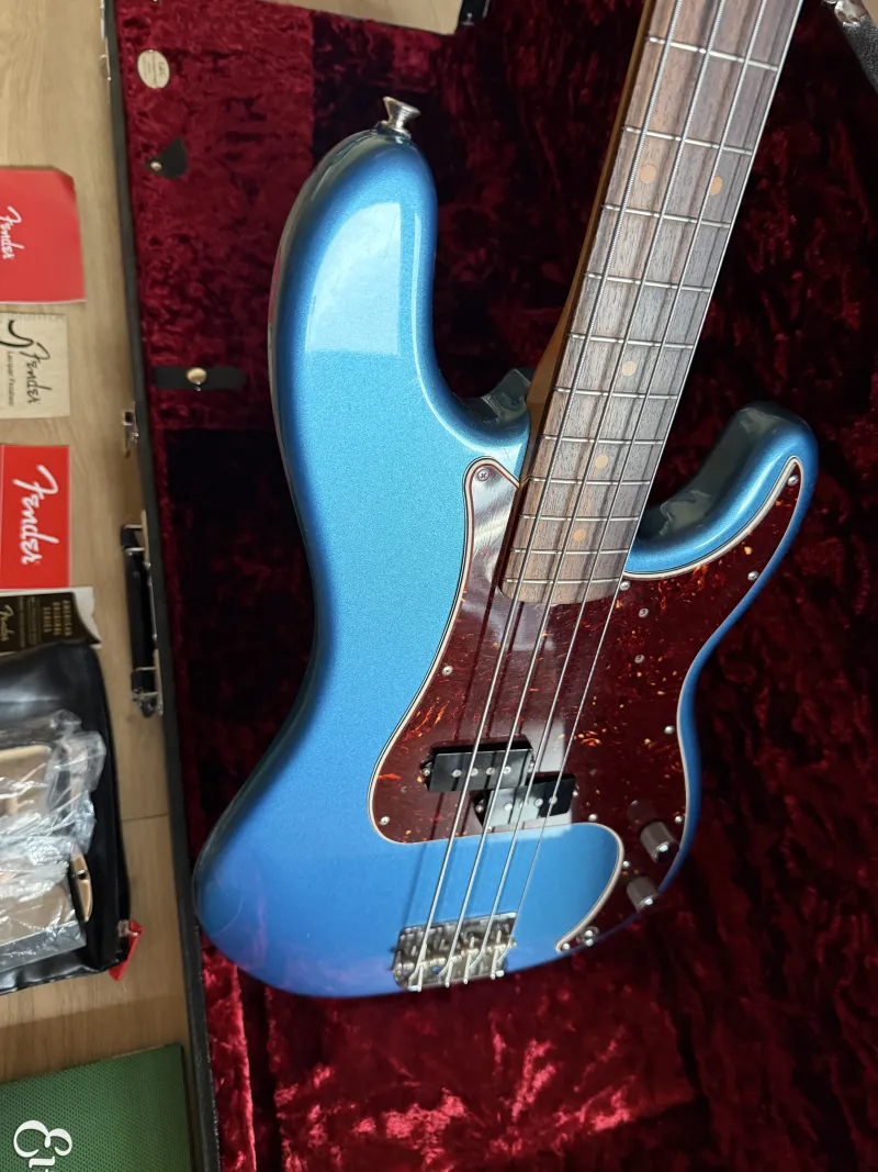 Eladó 2018-as american original 60’s precision bass, lake placid blue basszusgitárom. Nitro finish, éger/juhar/rózsa. Szép állapot, a nitro finish miatt karcok vannak, de semmi tragikus. Gyári tokkal, papírokkal, vasakkal. Jelenleg roto 45-105 szett van rajta, de adok mellé egy bontatlan elixír 45-105 szettet. remek klasszik vintage preci sound, jó játszhatóság. Sajnos valamelyik hangszeremnek mennie kell, így addig és akkor eladó, ha a másik hangszerem megmarad. Kesztölcön kipróbálható, szállítás megegyezés szerint. Ár irányár, olcsóbb precit beszámolok 150k-ig (pl.: squier cv, …)