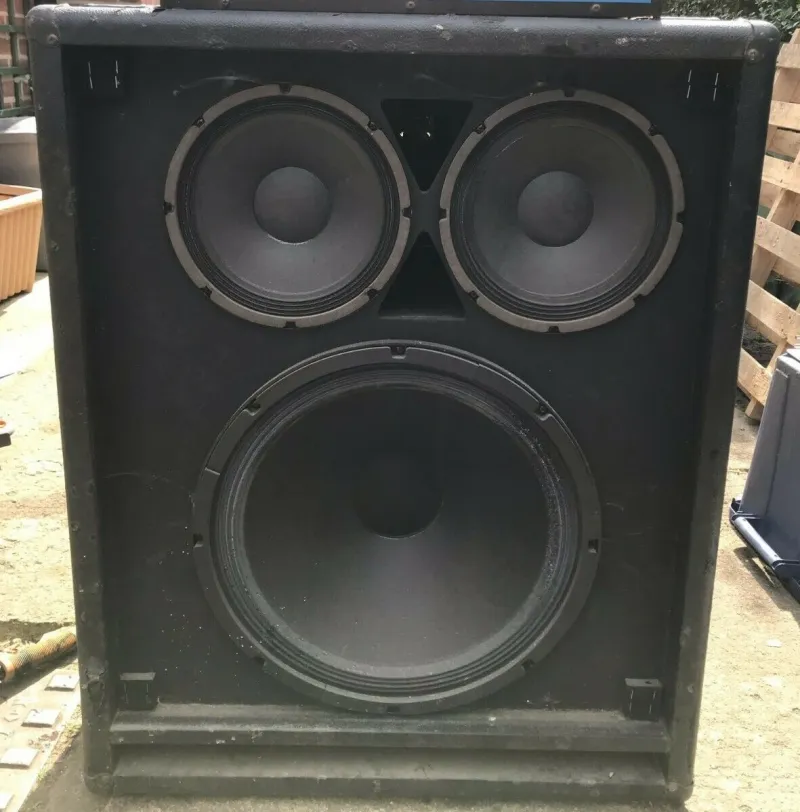 300 Watt teljesitmeny, 4 Ohm impendancia, 1x18˝ és 2x10˝ hangszórók, 3 különböző hangszóró bemenet (low-range, high-range, or full-range).