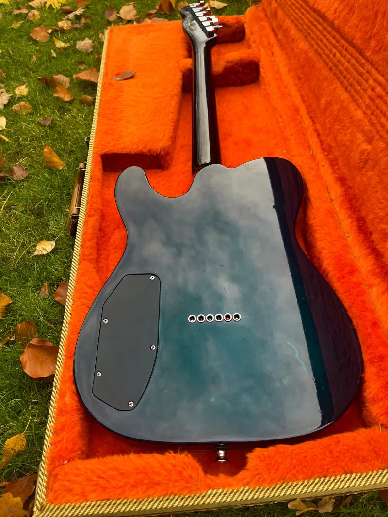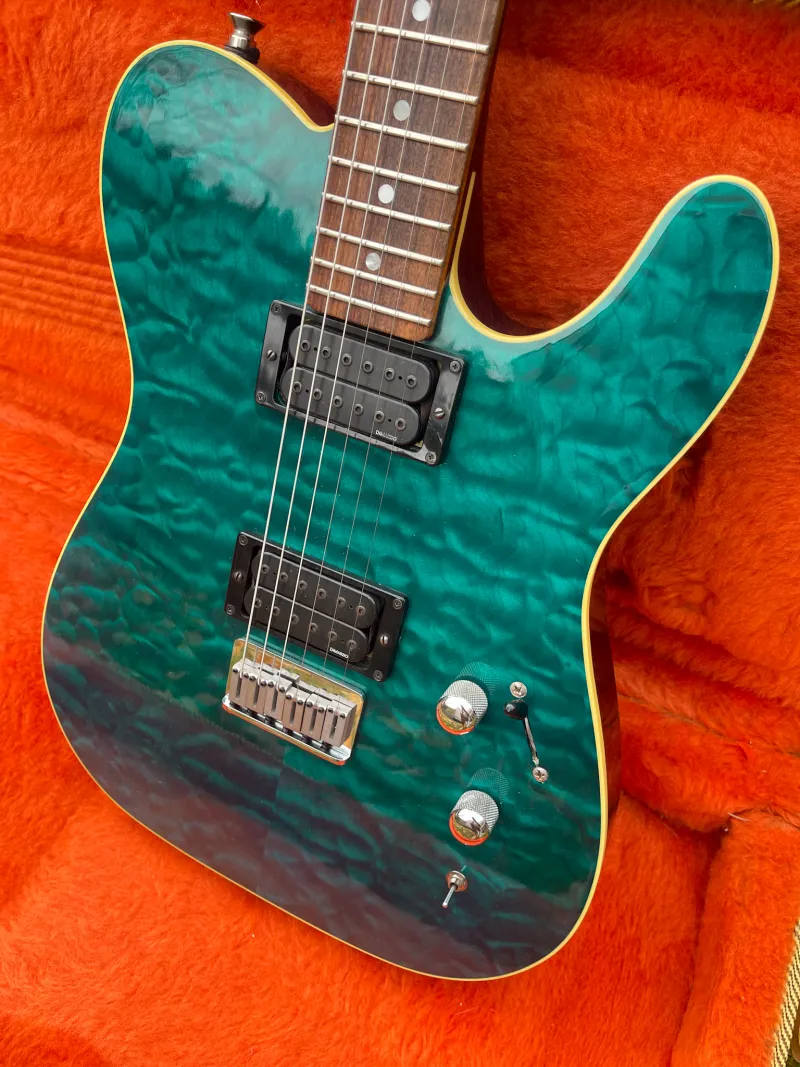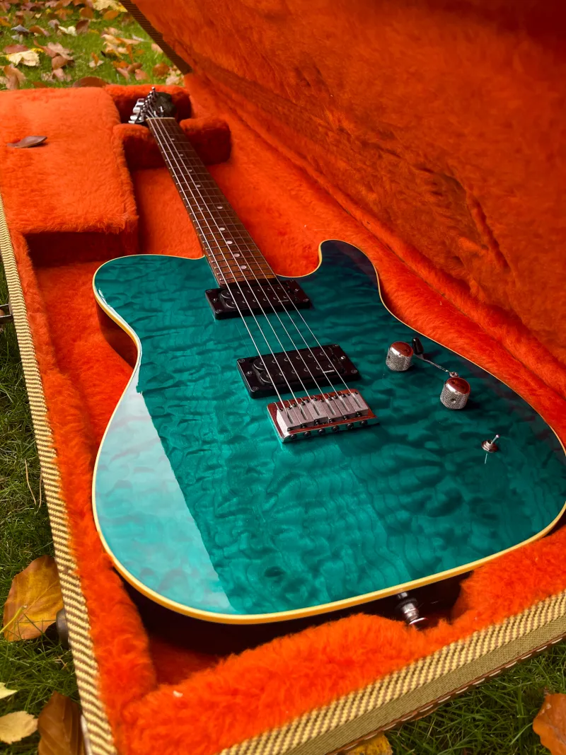 NO TRADES!!!I am selling this unusual piece from my collection. This is a SET NECK telecaster from the beginning of the Fender Custom Shop 1990/91 from early John Page era. The top bounded body is made of Honduran mahogany with a ˝bookmatched˝ top made of 5A quilted maple. The neck is also made of Honduran mahogany glued to the body, the fingerboard is made of Brazilian rosewood with a 12`` radius for a more pleasant playability, DiMazio H4 and H5 pickups, three-way switch, mini switch for expanding humbuckers, TBX pot (treble & bass expansion). The instrument is completely in nitro lacquer. Great and original condition, perfect sound, adjusted, original case included.