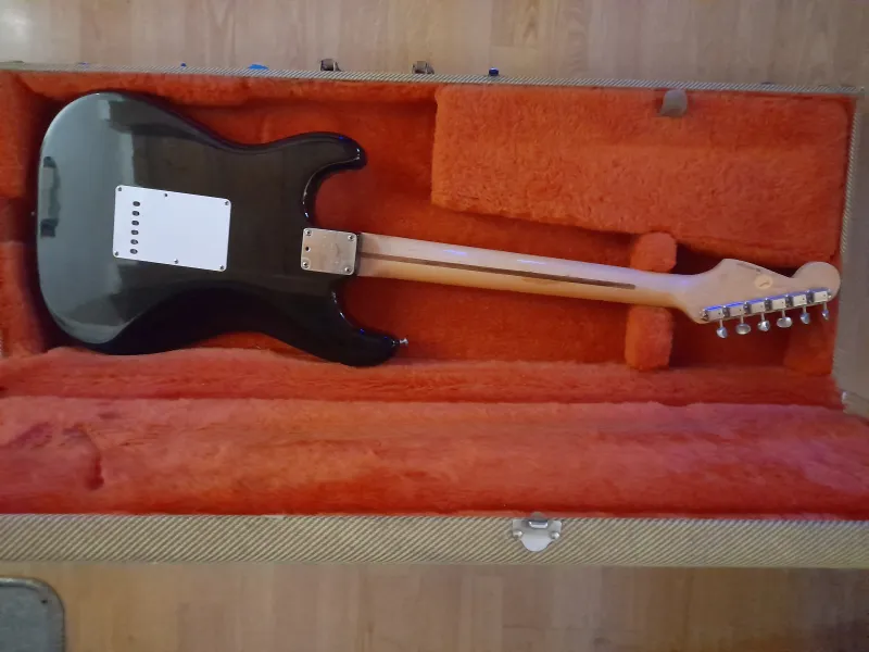 Eladó, 1996-os Fender Eric Clapton Stratocaster ˝Blackie˝, kultikus hangszer, Nagy Márktól (Amberjack) vettem kitünő állapotban. Mindene eredeti, Vintage Noiseless hangszedők vannak benne. Eredeti keménytokjával. Ára: 800.000ft.Ízelítő: