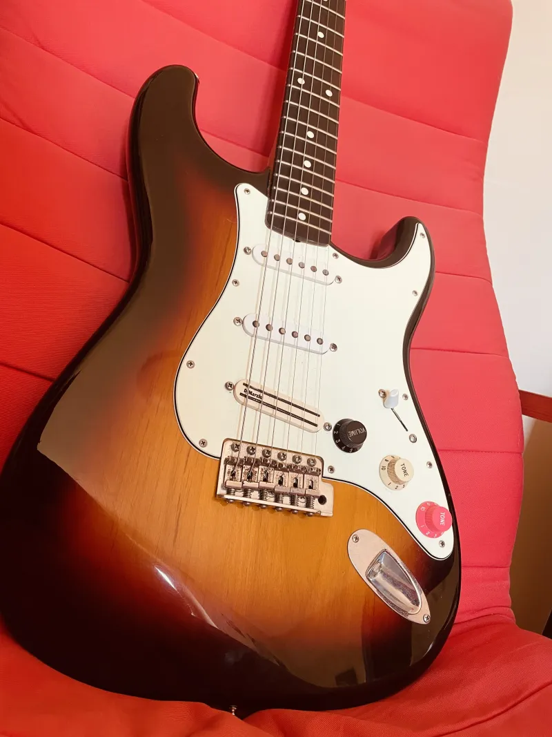 Eladó szeretett hangszerem, nehéz szívvel de megválok tőle.2017-es belpiacios Japán strato, jelentősen fel lett tuningolva az évek alatt. 12-es rádiusz, modern, vékony nyakprofil, csont nyereg, dimarzio hangszedők, prs kapcsoló, a nyak egy kevésbé tapadós, nagyon kényelmes vaxolt felületet kapott, olyan feeling mint a modernebb amerikai fendereken. Hihetetlen jó fa, jo testhang, egyszerre hoz egy vintage es modern hangzást, játékérzetet.