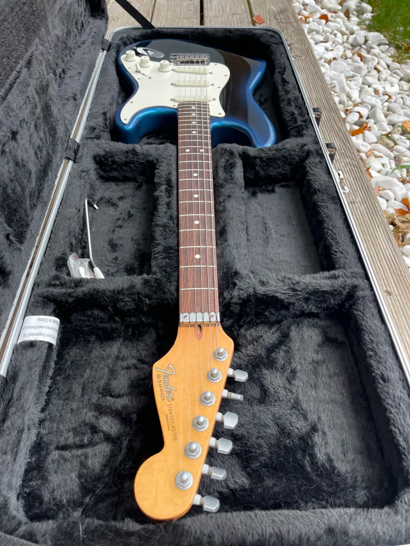 I am selling this beautiful US Stratocaster from the PLUS series (1987-1998 the highest production line from Fender), in the rare collectible color Blue pearl burst. This series was produced under the same names as the Custom Shop models. Alder body, maple neck, rosewood fingerboard, LACE SENSORS GOLD hum-free pickups (as on Clapton, J.Beck models), passive TBX tone control (Tone & Bass Expansion), Wilkinson roller nut, Micro-tilt, locking tuning machines, hipshot tremsetter, case, whammy bar. A quality instrument from Fender`s golden years, in original condition, plays great, tunes perfectly, resonates, and looks great for its age - a few small scratches in the top part of the paint. The guitar is tuned and ready to play. For sale only, I need funds for my new guitar...Shipping from the Czech Republic, insured and tracked.