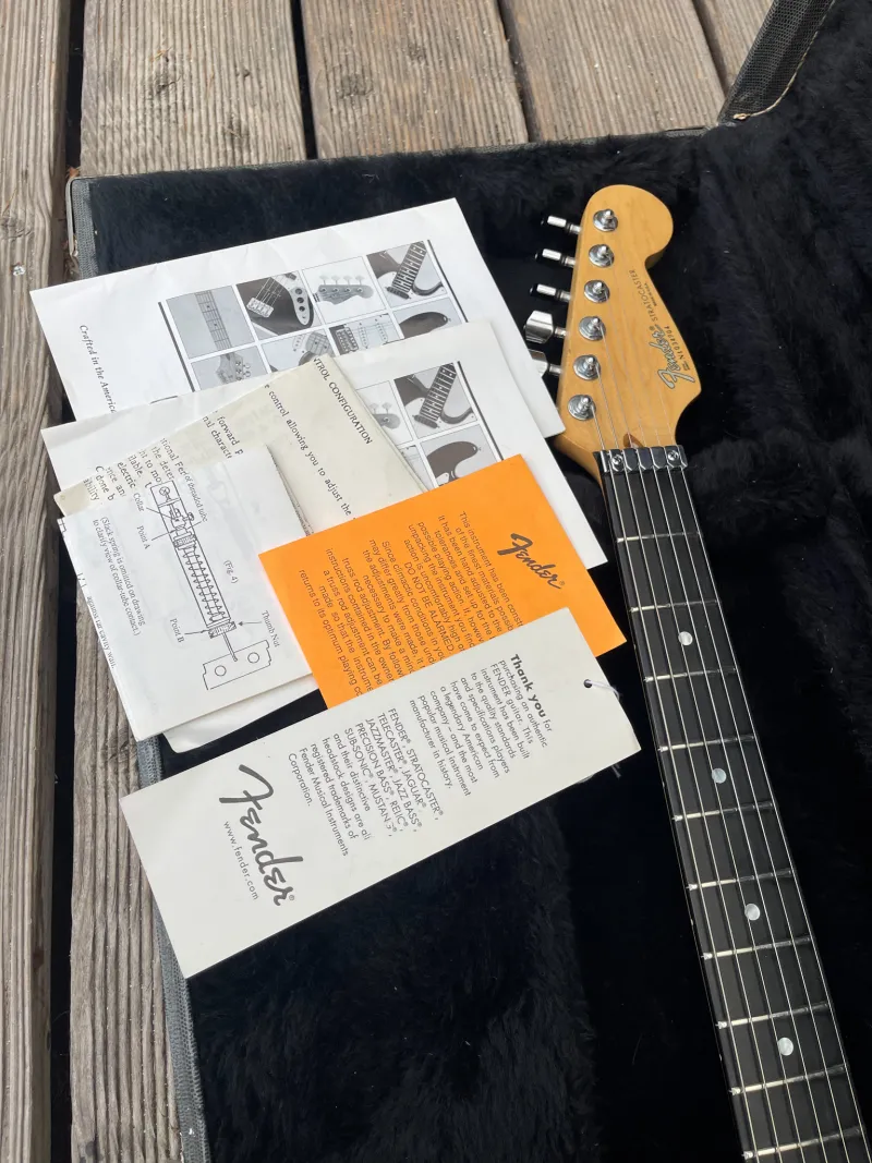 NO TRADES!!Selling this collectible gem, a hard-to-find USA Strat Plus Ultra in a rare ebony burst color from 1991. Body- select alder, 5A flamed maple top and back, maple neck, !!EBONY!! fingerboard (the only model on which Fender used ebony at the time), noiseless Lace Sensor DUAL RED pickups at the bridge (can be used as only lower single, upper single or as HB with a mini switch), Gold in the middle and Blue in the neck, Wilkinson roller nut, Sperzel locking tuners, TBX (Treble & bass expander), tremsetter for tuning stability. The guitar is in excellent and 100% original condition for its 34 years, it tunes perfectly, the sound is perfect, and thanks to the wide range of pickup combinations it is very versatile for all styles. The truss rod works as it should, the frets are 9/10, and the guitar is pro set-up by my guitar tech. Documents, tags, original Fender snakeskin case and tremolo arm are included.