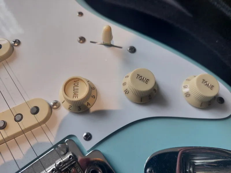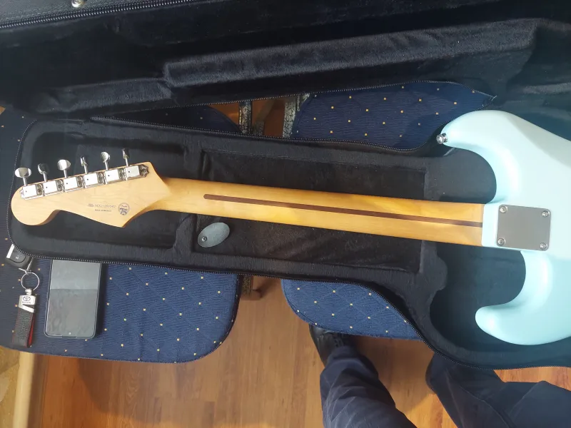 Eladó egy igen kedvező és alacsony árú, gyönyörű szép újszerű és minden módosítástól mentes gyári állapotú, 2021- es Fender Vintera 50s Modified Stratocaster Daphne Blue színű gitár, a mexicoi gitárok csúcsa . Ez a drágább DBL verziójú és nem a sima SBL. Főbb tulajdonságok: satus hangoló kulcsok; 6 helyett 2 pontos tremoló; volume gomb benyomható és így a nyaki hangszedőt bekapcsolja állandóra ami plusz 2 hangszín összesen 7 érhető el. A gitáron egy alig látható lakk lepattogzódás látható amit gyárilag próbáltak javítani, így csak bizonyos fény viszonyok mellett és szögből látható, én így vásároltam, ezt is csak véletlenül vettem észre, más karc vagy ütődés nincs. Papírok, imbuszkulcs, tremoló kar rugóval, mindene meg van kivéve az eredeti doboz. Csere csak is piezos hibrid gitár jöhet szóba mint PL: LTD EC-1000 QM DELUXE PIEZO, PRS SE HOLLYBODY II PIEZO, stb... új ára 430000Ft-tól felfelé, én most 280000 Ft-ért adom. Személyes átvétel lehetséges megbeszélés szerint. Ha egy igazi régi Fender Stratocaster hangzásra vágysz akkor ez a te gitárod. Bármi kérdés van, telefonon vagy üzenetben elérhető vagyok, minden kérdésre szívesen válaszolok.Test: éger, Nyak-fogólap: Jávor, Hangszedő:3x Vintage-Style 50s Single-Coil Hot Strat.