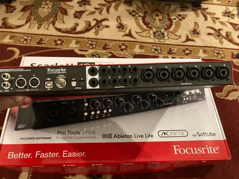 A második generációs 18 be/ 20 kimenetes, USB 2.0-s külső hangkártya rendelkezik nyolc új Scarlett mikrofon/ hangszer előerősítővel, 8 ADAT bejárattal, nyolc vonal kijárattal, két fejhallgató és két monitor kijárattal, mintavételezése max 192kHz/24Bit. Mac és PC kompatibilis. Szoftver és plug-in csomag letölthető hozzá.