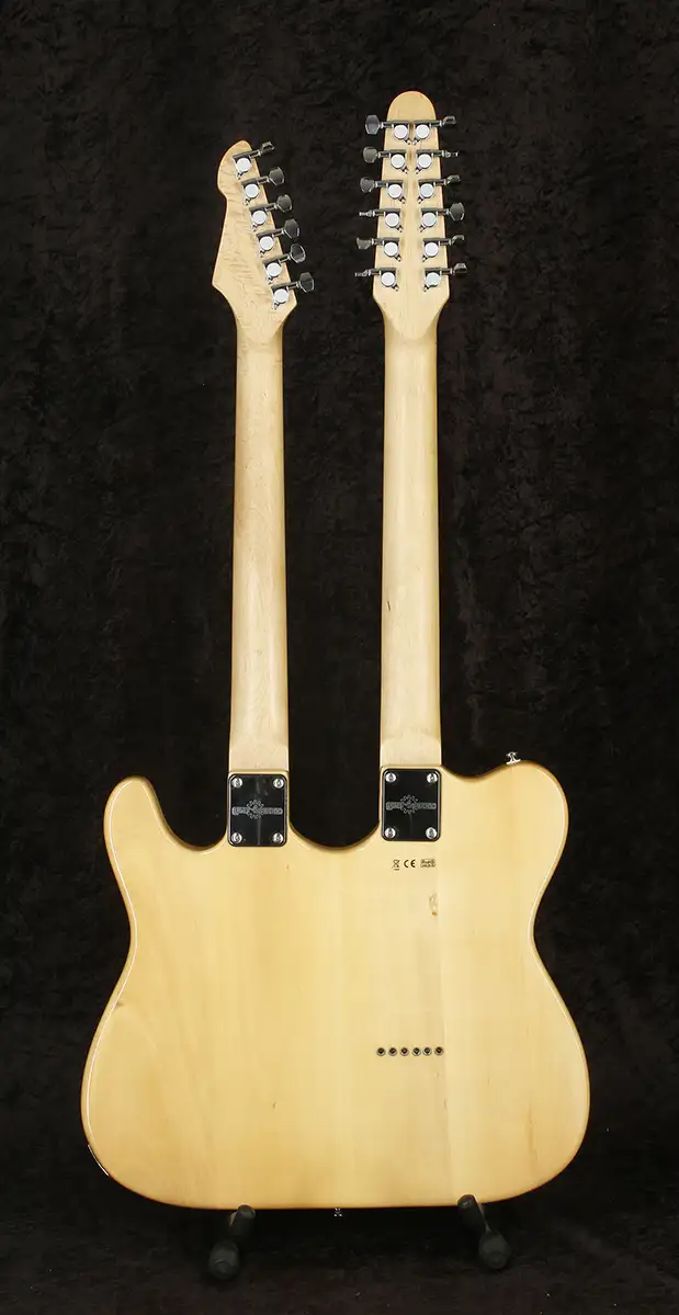 Gear4music kétnyakú Tele elektromos gitár. Gyári puhatokkal. 12 húros és 6 húros rész. Császárfa test, juhar nyakak, juhar fogólapok.