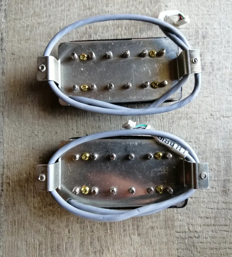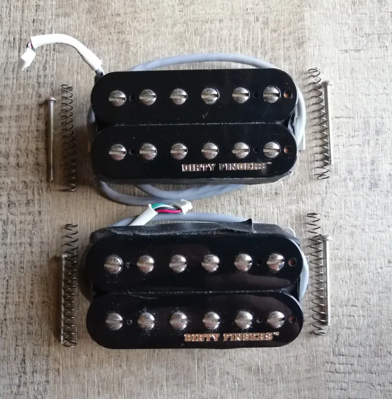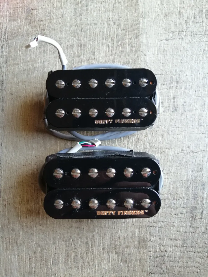Egy 2013 -as Gibson Tribute 70`s SG ből való Dirty Fingers szett . Teljesen jó állapot, semmi sérülés vagy rohadás, csak a használatból származó, apróbb karcok, illetve működik tökéletesen . Lecseréltem őket, mert nekem sok volt a 16 ohm kimeneti jel, egyébként nincs rossz hangjuk egyáltalán . Rugókat és csavarokat adom hozzájuk. Igény esetén plusz pénzért, hozzá való, teljes, gyári NYÁK -os elektronikát, potisapkákkal, pickup váltó kapbsolóval tudok hozzá adni.Shipping