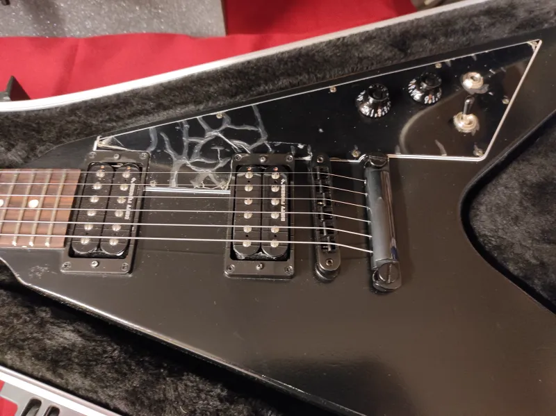 Eladó egy Gibson Flying V B-2, 2019-es modell, második tulaj vagyok.A gitár decemberben újra lett bundozva szakember által, fogólap/bundok síkba csiszolva és kapott csont nyerget, ezen kívül mindene gyári, költségmentes, pontos, rezonáns gitár, nem fejnehéz.