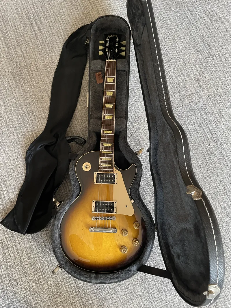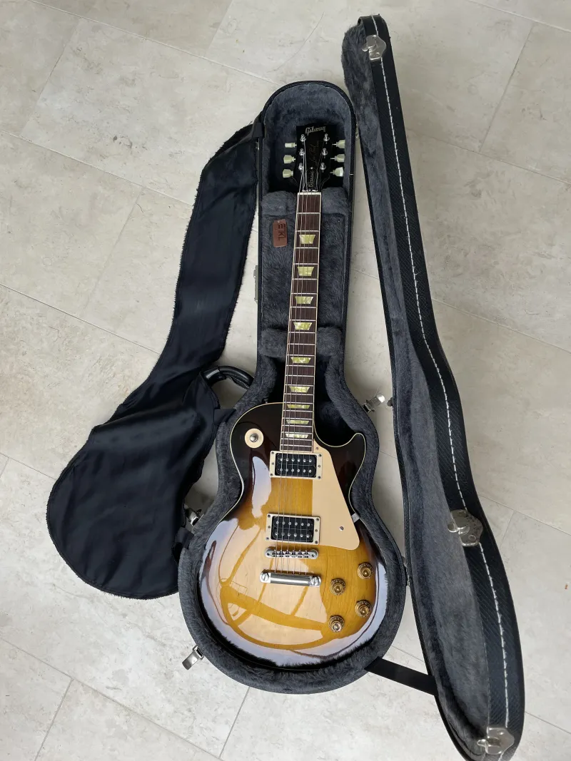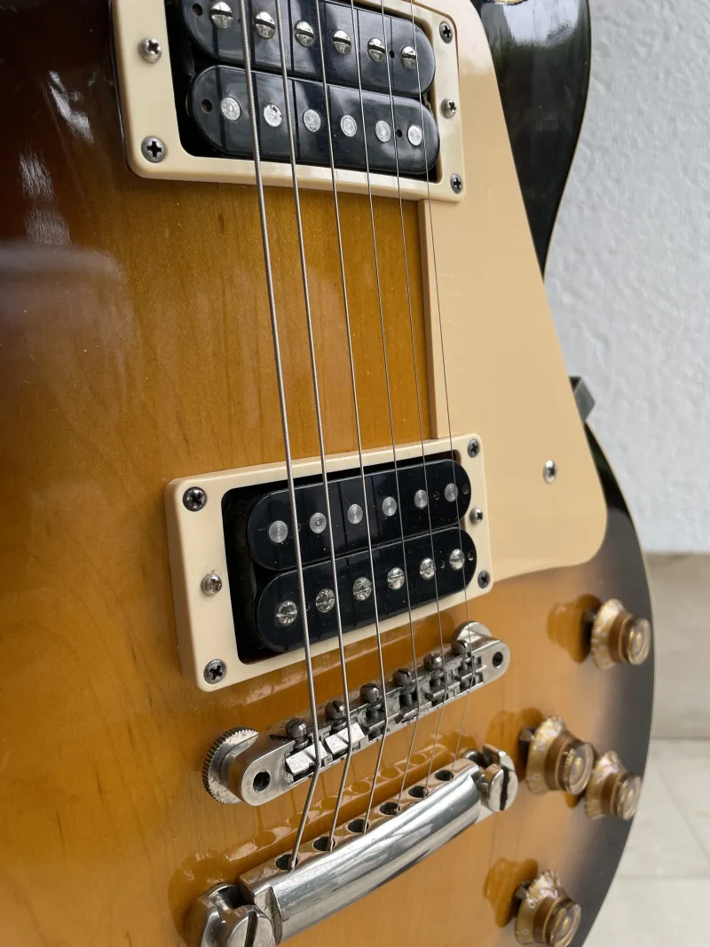Sziasztok!Eladnám Les Paul Classic 1960 gitáromat. 2003-ban gyártották, úgyhogy ez még a csak Custom Shop gitárokon elérhető, közvetlenül a fedlapba fúrt ABR1 es híddal szerelt. Klaszikus, tömör mahagóni test és nyak, gyönyörű mintázatú juhar fedlap, rózsafa fogólap. Az eredeti kerámiamágneses, nagyjelű 496R-500T pickupok helyett Seymour Duncan APH1 AlNiCo II pickupok vannak benne, kb amit Slash használt az AfD albumon.
