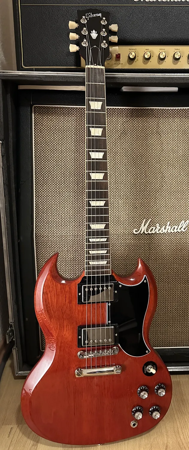 Eladó ez a 2020-as gyártmányú újszerű állapotban lévő Gibson SG Standard `61 típusú gitár Vintage Cherry színben. Frissen beállítva 9-42 húrokkal, bevetésre készen. Természetesen az összes Case Candy és gyári a Gibson keménytok is jár a gitárhoz.Felülmúlhatatlan játékkényelem és rezonancia jellemzi a hangszert. Ebben hálistenmek újfent a kézzel forrasztott igényes elektronika található, aminek köszönhetően nem csak akusztikusan csodás az élmény, hanem egy jó Marshallba dugva is megkapjuk a hőn áhított etalon hangzást. Hanganyag hamarosan elérhető!