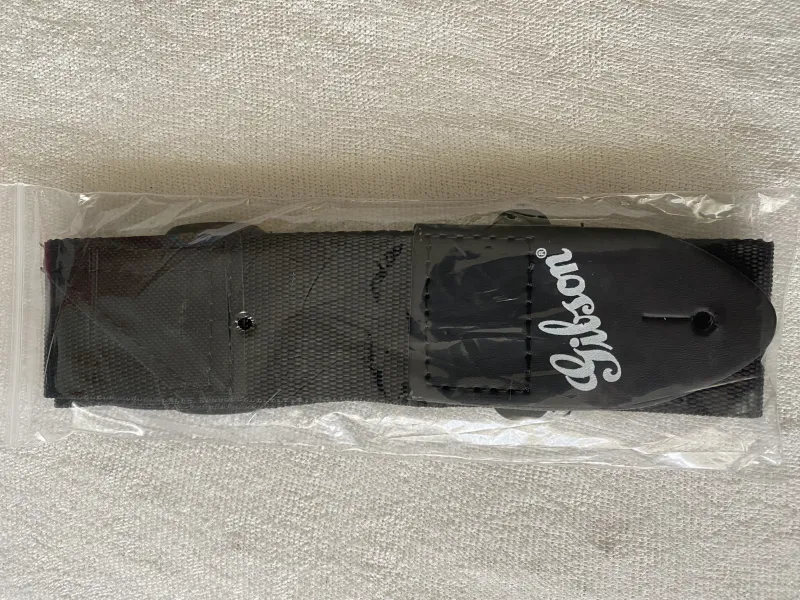 Gibson GSB10 Regular Safety Strap Black Style 2″. Állítható hosszúságú 5 cm széles fekete gitárpánt, Gibson Custom Art logóval, makulátlan, sohasem hasznalt, érintetlen gyári bontatlan csomagolásában.