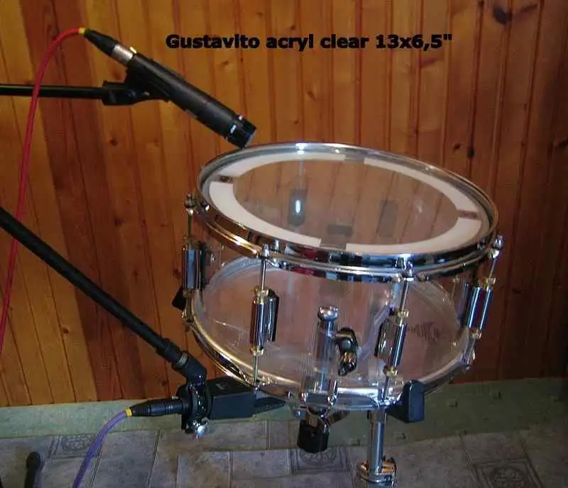 For sale: A Gustavito Acryl clear 13x6.5" snare drum.