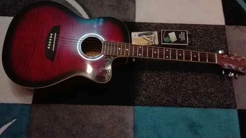 Free tuner and capo! A good beginner instrument, the truss rod works, with Martin Bronze strings (needs changing soon).