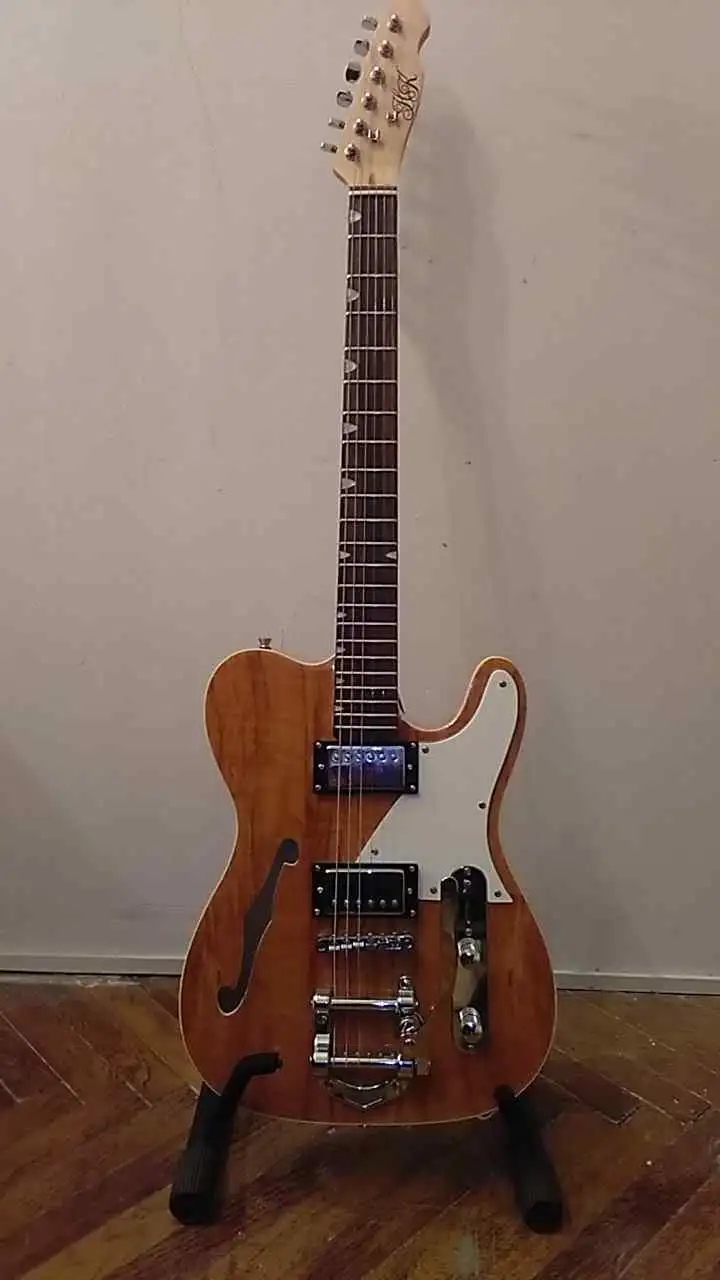 huendeskesFor sale due to underutilization is a like-new HK STL-90 thinline telecaster. With 2 humbuckers, Bigsby-style vibrato. Includes a leather case. It sounds like this: