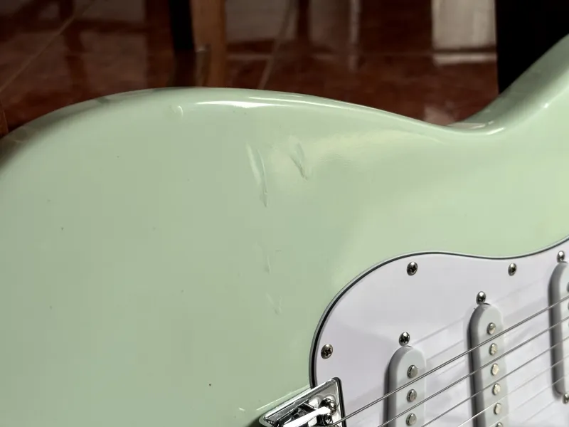 A lakkozáson sajnos lett egy pici hiba, ezért a nagyon kedvező ár. Ennyiért tényleg ajándék egy egyedi hangszer akár kezdő akár haladó gitárosoknak. Kecskeméten kipróbálható.