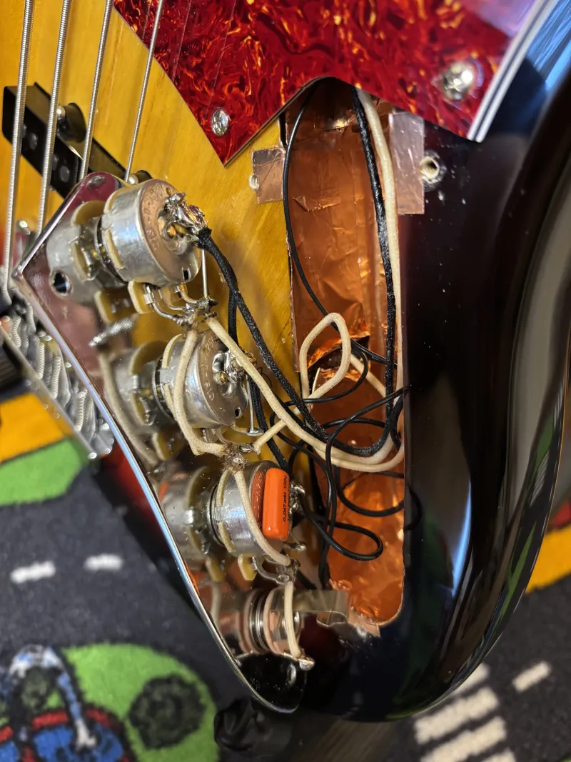 Eladó egy Fender cuccokkal feltuningolt 3 hónapos Harley-Benton JB-75 Sunburst basszusgitár.Kapott egy T.A.D. kábel és potiszettet (CTS), Fender Pure Vintage ‘66-os hangszedőket, Fender Hi-Mass húrlábat réz babákkal, csont nyerget. Új Elixir szettel frissen beállítva.