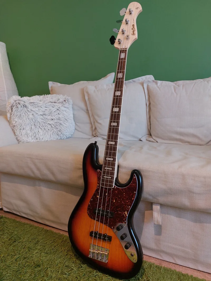 Eladó a képen látható Harley Benton JB-75 SB Vintage Series basszusgitár. EMG JVX hangszedővel szerelt, jelenleg fekete koptatóval. Hibátlan esztétikai és műszaki állapotban. Elixir hurkészlettel, Schaller strap lock-al. Az eredeti koptatót és hangszedőt is adom hozzá.A személyes átvételt preferálom, Heves és Pest megye területén rugalmas vagyok.