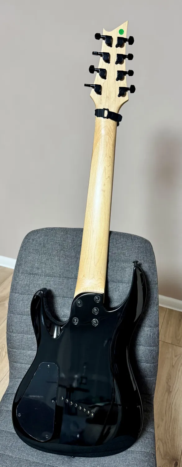 Sziasztok!Eladóvá vált a címben említett, beállított, 8 húros bestia. A fejről készült képen látszik a gitár két, inkább esztétikai hibája, amik a játékot nem befolyásolják. A gittyó egyébként kényelmes, jól játszható hangszer, ajánlom olyanoknak akik kisebb anyagi befektetéssel, de belekóstolnának a plusz két húrba. A profilomon az instagram linkre kattintva, megfülelheted/nézheted bevetés közben, két posztban. Köszi, a figyelmet!