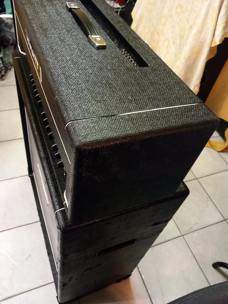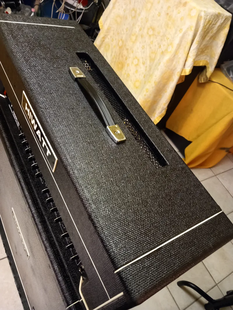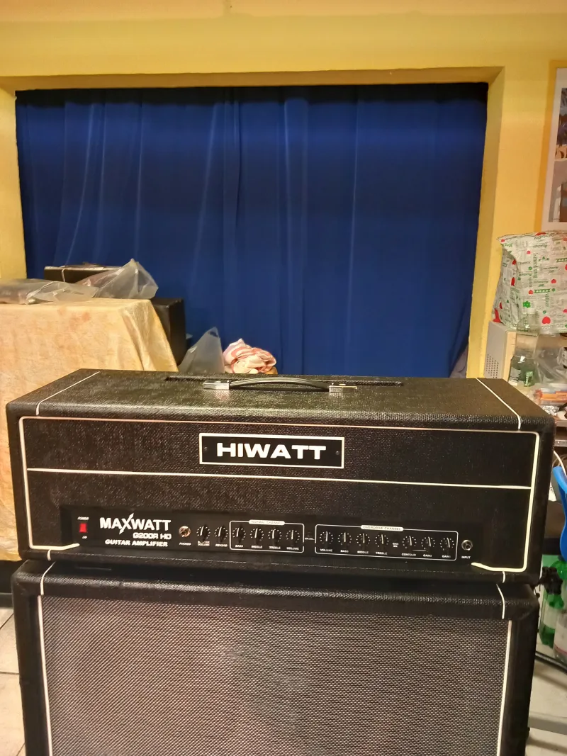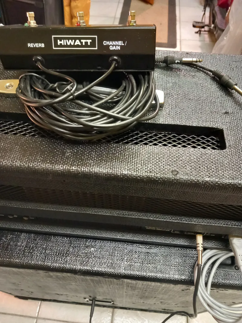 A képeken látható állapotban lévő Angol gyártmányú, gitár erősítő HIWATT 240.W/ 4.Ohm FS-3as lábkapcsolóval és 4x30.cm-es átmérőjű hangszóróval szerelt 400.W.4-16.Ohm monó állásban eladó.HIWATT MAXWATT G200R HD gitár erősítő fej: