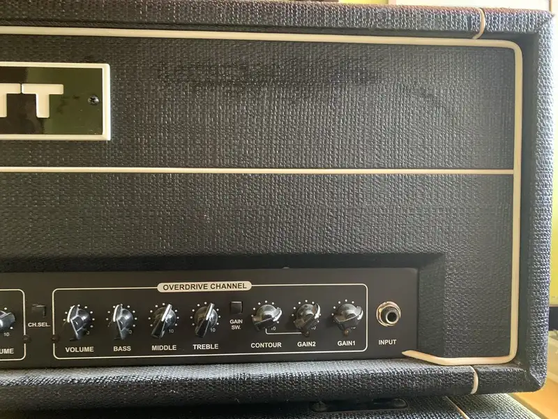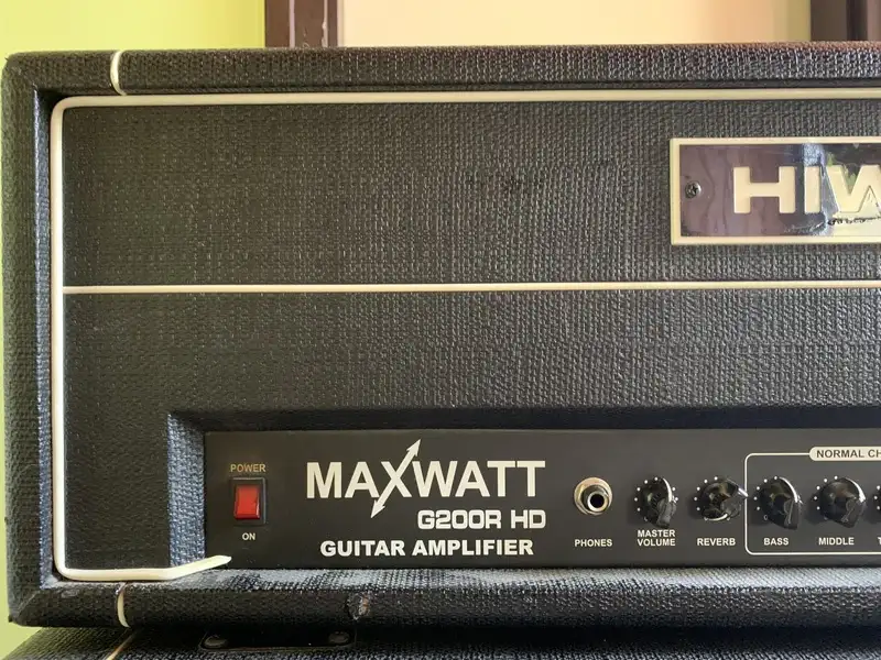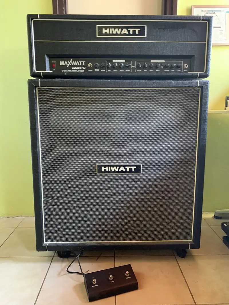 Hiwatt Maxwatt G200R HD tranzisztoros erősítőfej és a hozzá tartozó M412 400 Wattos láda + lábkapcsoló.Erősítő spec.: