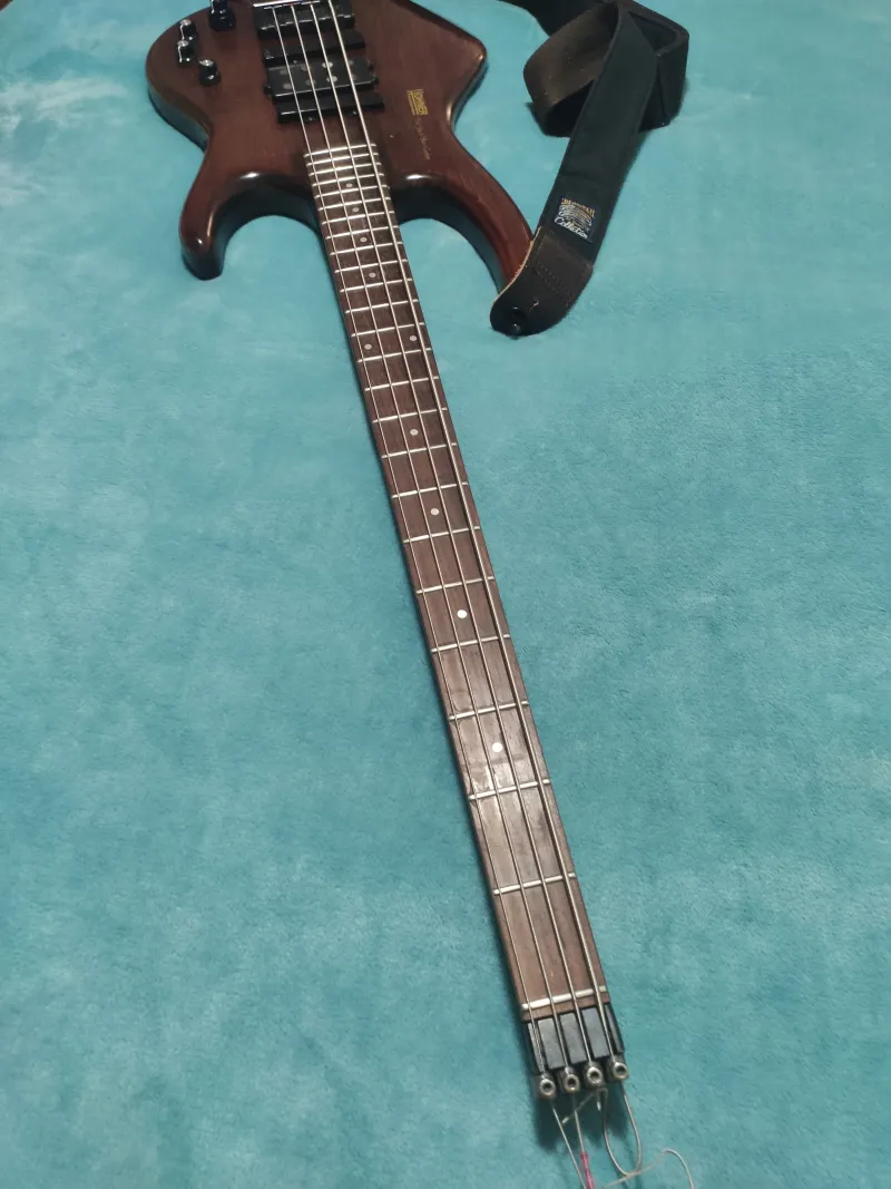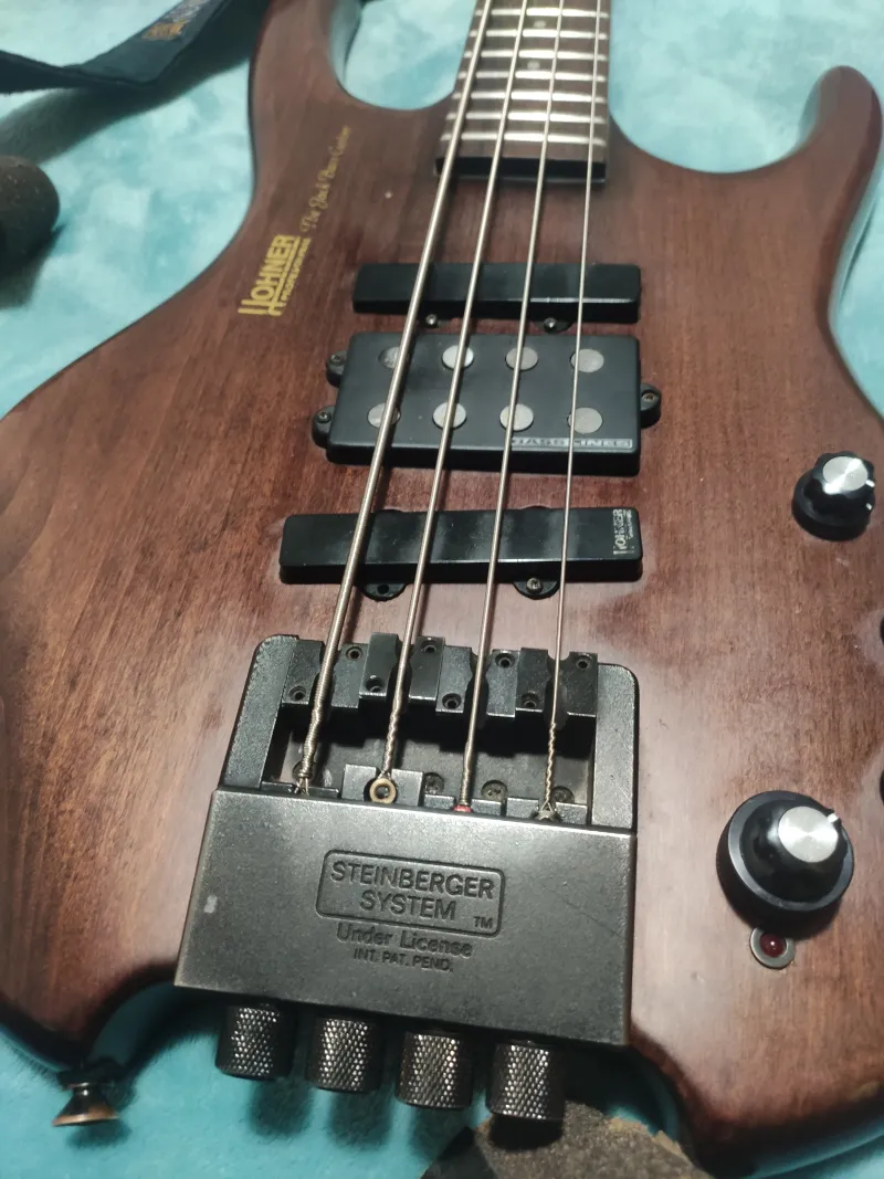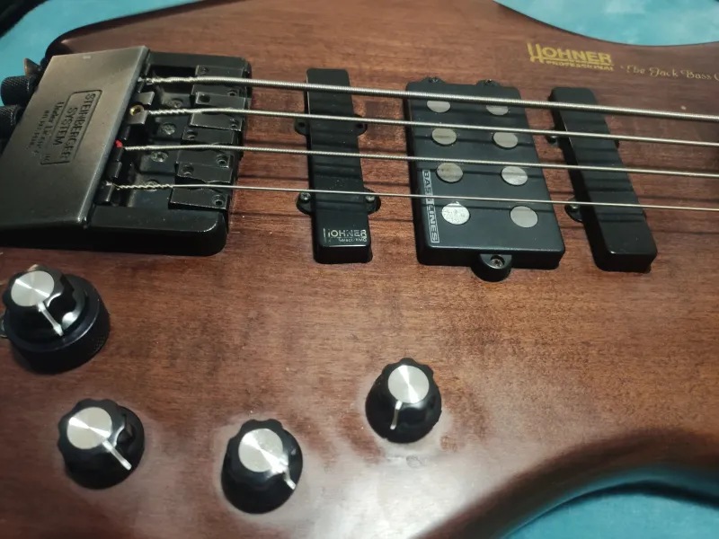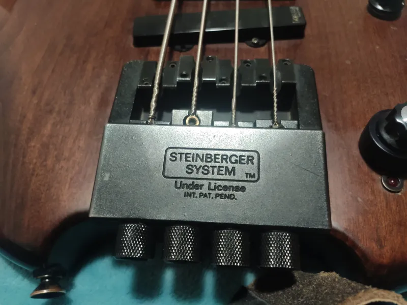 A két jazz hangszedő között egy Seymour Duncan MM pickup csücsül + 3 sávos Seymour Duncan aktív elektronika. A Steinberger húrláb tökéletesen teszi a dolgát. A fejnél egy satus-csavaros húrögzítő van, igy bármilyen (nem csak két labdás) húr használható rajta.