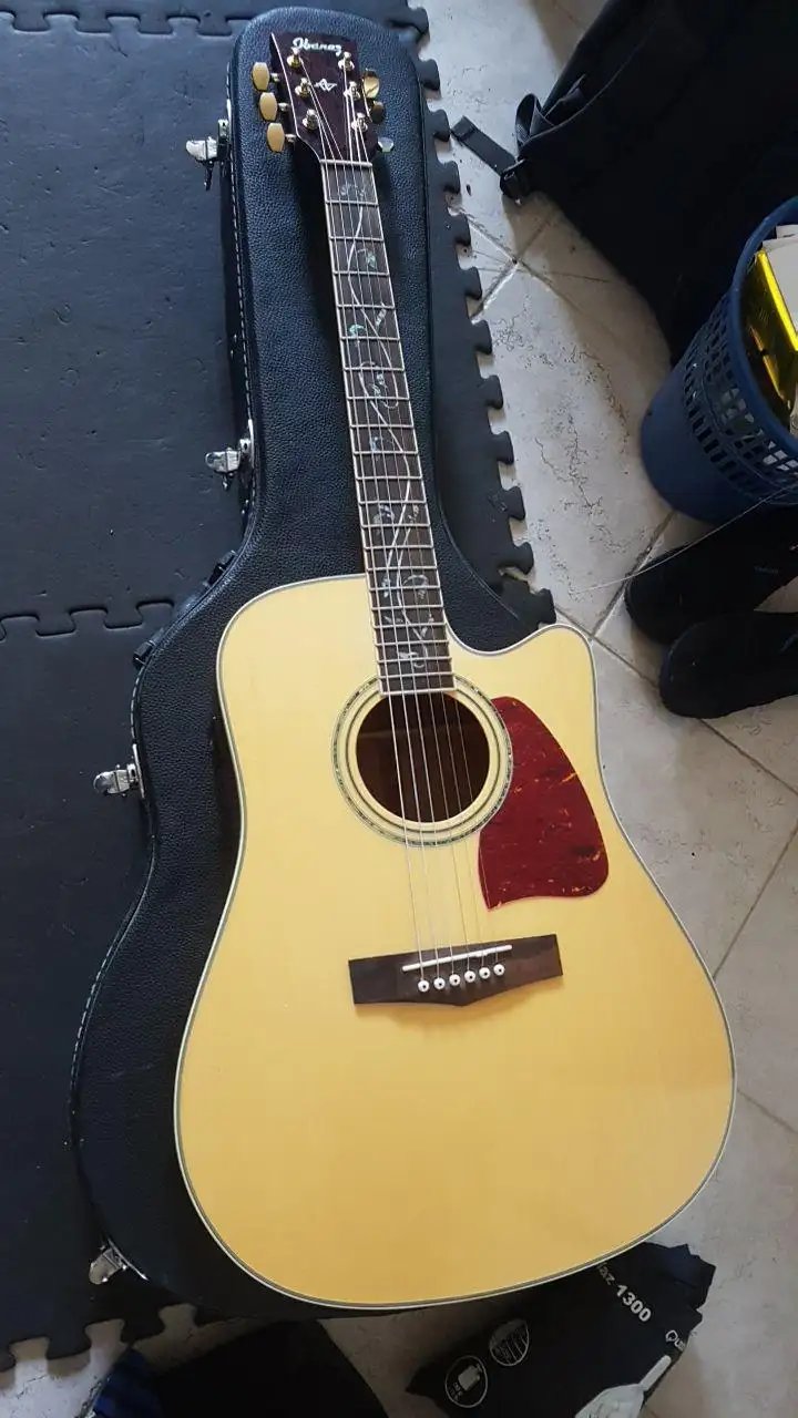 Eladásra kínálom Ibanez Artwood szériás elektroakusztikus gitáromat, frissen húrozva Ernie Ball 11-es szettel. Gyönyörű, indamintás berakás az egész nyakon, rózsafa hátlap, Fishman elektroakusztikus elektronika, mely 9V elemmel működik, beépített 4 sávos EQ, Warwick akusztikus kemény tokkal, melyen a tolex pár helyen már elengedett, de természetesen ragasztható, statikailag jó állapotnak örvend, 1 darab kulcssal, ajándék Ibanez akusztikus pánttal. Csere és alku nem érdekel.Connected review (1)