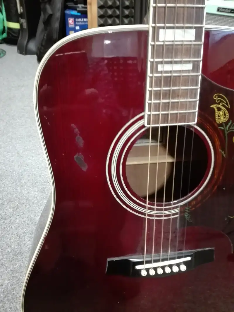 huendeskesVintage Ibanez acoustic guitar for sale. Japanese made, of course. In active use for at least thirty-five years. Numerous small and large blemishes on the finish and the edge of the headstock is worn over the years. In return, it delivers the sound of old Hummingbird or large-bodied Guild guitars. I also play the solo in the linked song on this instrument. The headstock is black, I just couldn't get rid of the reflection in the picture. Can be tested 15 km north of Győr in Nagymegyer, or delivered to Győr or its surroundings if there is serious interest.