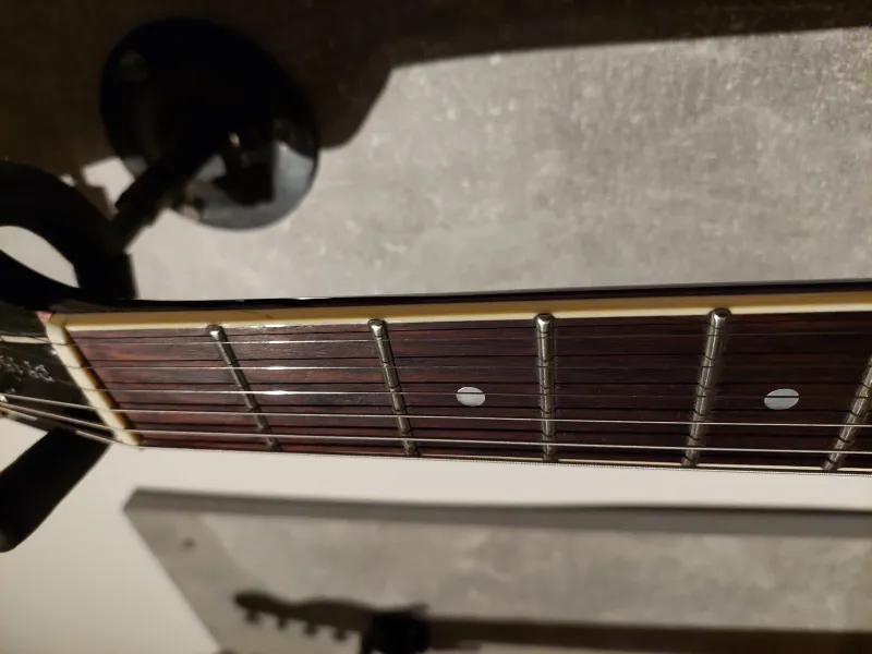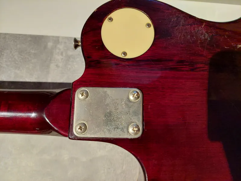 Az eltelt 43 év hagyott rajta némi nyomot.Mégsem legyalázott,inkább patináns.Nagyon szép bordó transparens színű.Maxon Super70 pickupok.PAF jellegű hang.Bundok jó állapotban.Enyhe használat látszik,még hosszú ideig nem igényel foglalkozást.Alacsony húrnyomás és húrmagasságra beállítva..Hangolókulcsok jól tartanak.Elektronika rendben.Új 10-46 elixir húrok.Az ára fix.