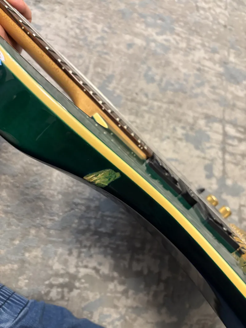 Egyetlen sèrülèse van amit be is fotóztam, de majd 30 èves hangszernek szerintem el lehet nèzni, bundok nagyon jók, tremolo karja is megvan.
