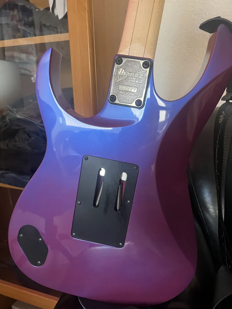 Eladó egy Ibanez RG550 Genesis Collection PN (Purple Neon) elektromos gitár, Made in Japan 🇯🇵, gyakorlatilag újszerű állapotban.Kb. 1 éve vásároltam, azóta összesen két rövid, kb. 15 perces koncerten volt használva, azon kívül csak otthon vettem elő néha.