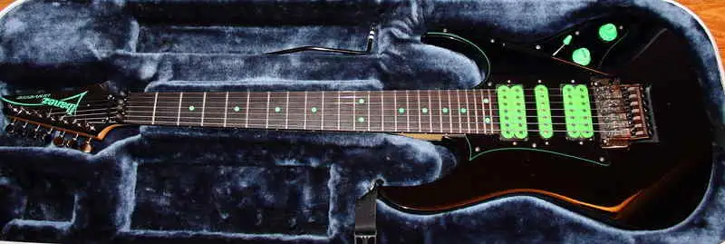 huendeskes A cult item, Ibanez UV7BK 7-string Steve Vai model from 1990. Steve Vai, J. Petrucci, Per Nilsson... played them. It's no longer manufactured. Made in Japan. There can only be 1-2 of them in the country.