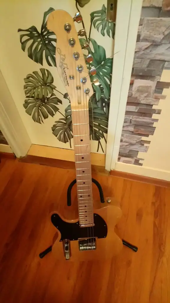 Eladó Jack And Danny Brothers Telecaster balkezes gitár. A test mesterségesen vintage kinézetűvé lett téve, már így került hozzám. Az eredeti hangszedőket Squier Fender Standard Telecaster gitárból kiszerelt hangszedőkre cseréltem. Meglepően jó, Fenderes hangja lett. A clean csilingelő tiszta, a crunch hangzás nekem a Status Quo hangzását idézi. A nyak kényelmes, könnyen játszható, alacsony húrnyomásra állítva. Tartozék a képen látható Ibanez puhatok, valamint az gyári fehér koptató. Az eredeti hangszedőket is adom hozzá. Elixir extra light 009-042 húrkészlettel. Ennyi pénzért egy kimondottan jó hangú gitár.