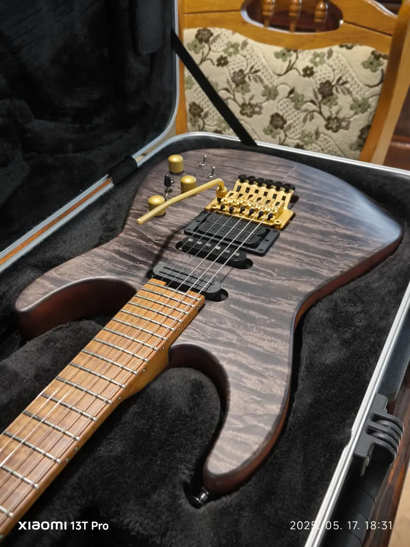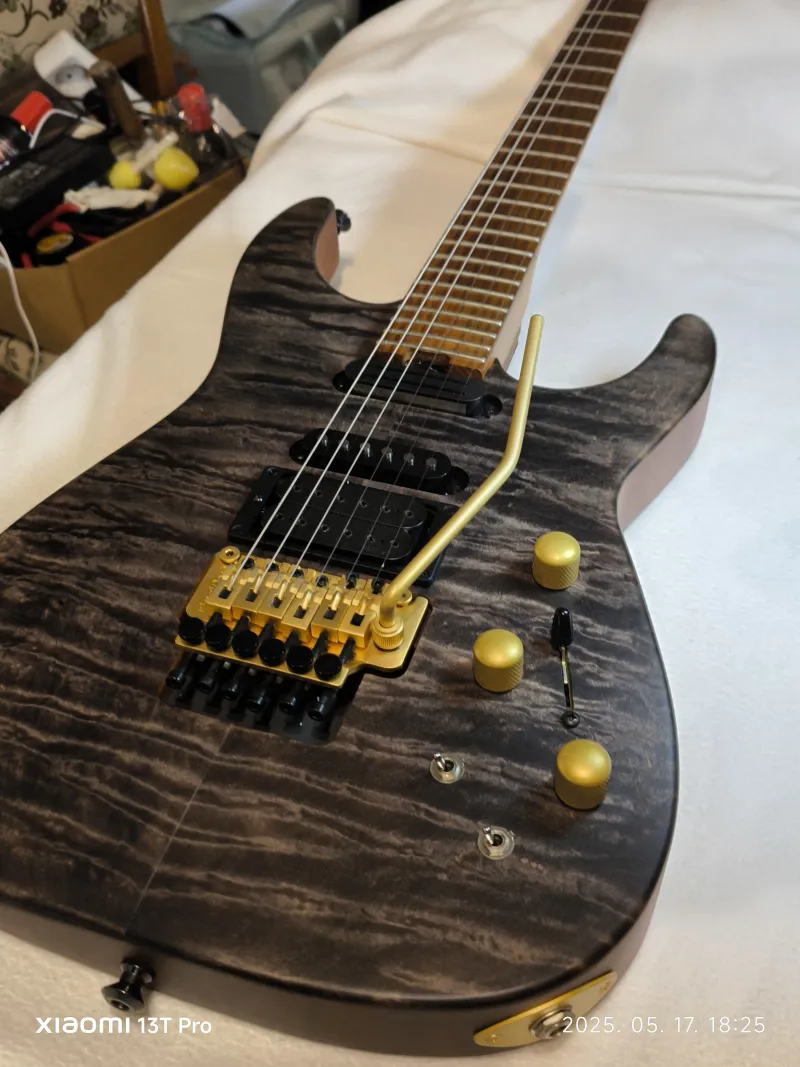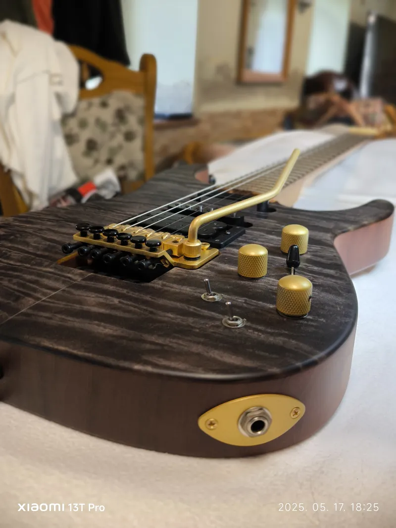 Hardver: Floyd Rose Original arany tremoló és arany szerelékek - nemcsak látványos, de a hangolást is atombiztosan tartja, akár extrém dive bombokat is kibír.