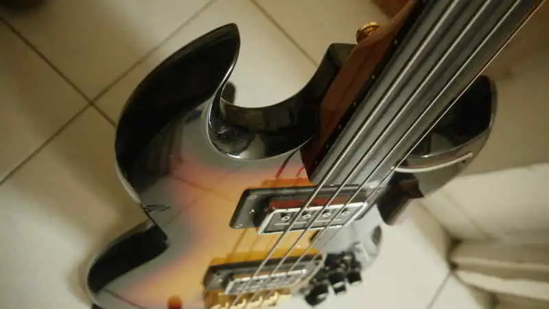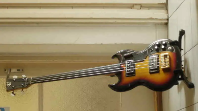 huendeskesFor sale due to underutilization is a Kay SG shape 4-string fretless bass from the early 70s. According to the original owner, it came to Europe in the 70s through the band Metro.