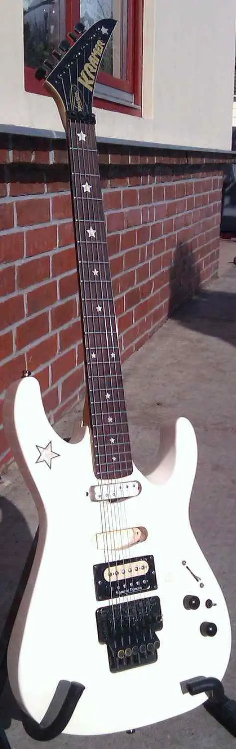 huendeskesFor sale a Kramer Pacer Custom II guitar! Not an original USA guitar (although it says 'Neptune NJ USA'), but practically identical! Schaller Floyd Rose and Schaller tuners, three-ply ESP neck, SH6 zebra at the bridge, Seymour SDBR at the neck, and it received a brass tremolo block that significantly influences its sound. For its age (early 90s), it's in perfect condition, got new fretwork 2 years ago, has removable star position markers for 3 months! No breaks or cracks, it's really for sale due to underutilization, or I'm interested in trade/part-exchange, e.g., Line6 X3 Live multi, or Marshall Valvestate, Line6 or Vox 2x10 or 2x12 combo, possibly in part-exchange a Digitech GNX larger multi, or GPS or a tablet, but this is negotiable. The cash price is 85,000 Ft, which is non-negotiable, it's already quite a steal :( obviously, the trade price is a bit higher... possibly without pickups...