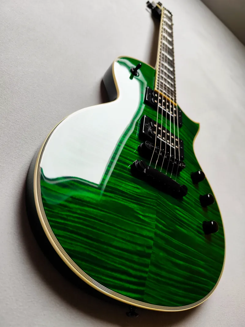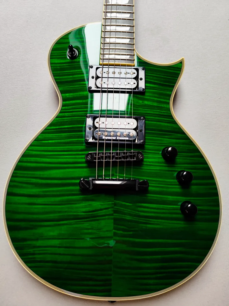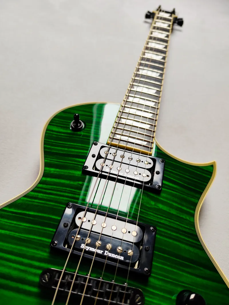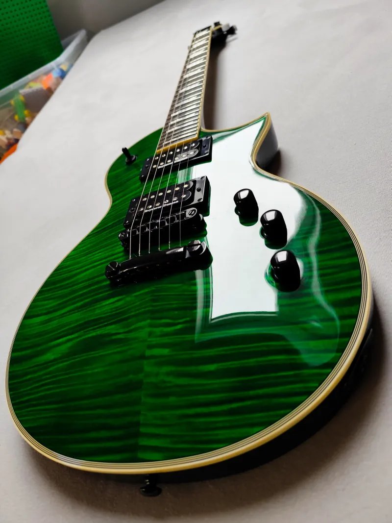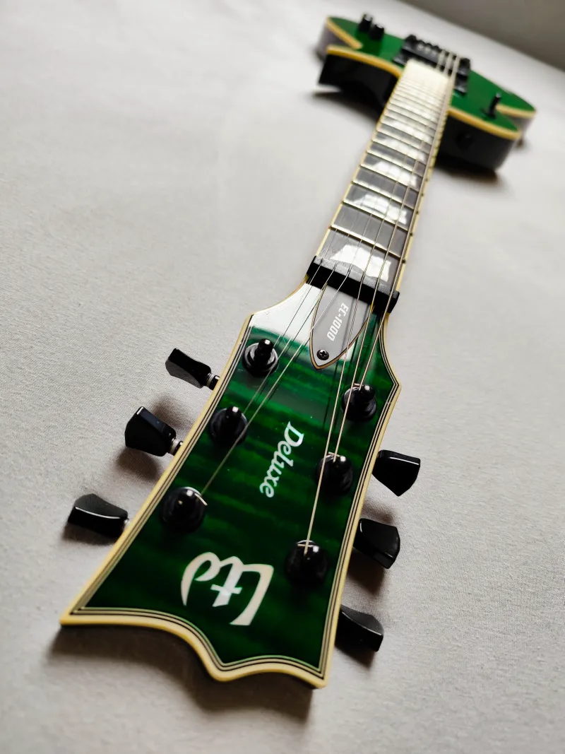Eladó egy ESP LTD EC-1000 elektromos gitár Transgreen színben, gyönyörű flamed top kivitelben, kitűnő esztétikai és műszaki állapotban.🔥 Hangszedők (felezhetők):