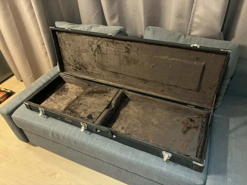 Ortega keménytokTömör rétegelt lemez, fekete vinil borítás. Tizenöt milliméter vastag párnázás, sötétbarna belső, fekete külső. Formája téglalap, így szinte minden elektromos gitár elfér benne, belső hossza 105 cm. Rekesz az apróságoknak, 3 patentos zár, kulcs.