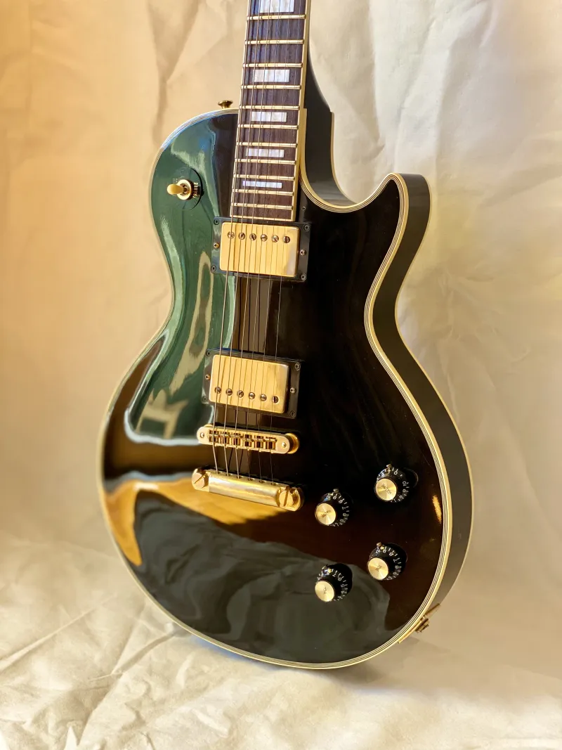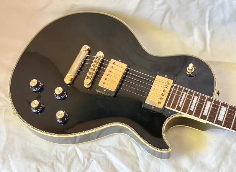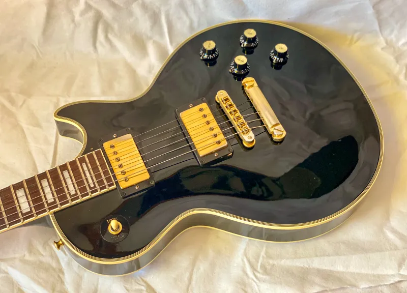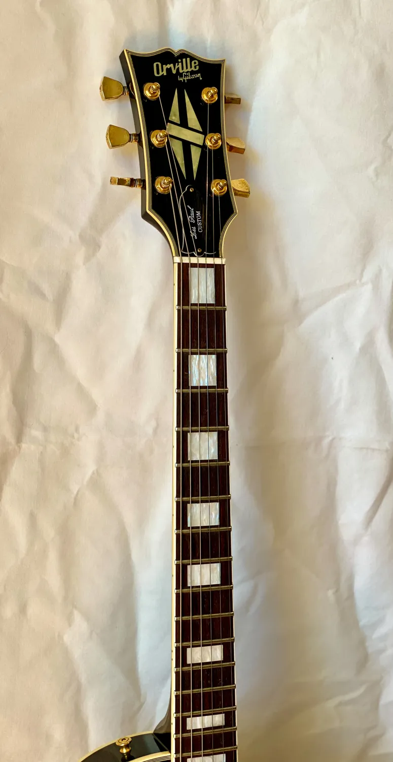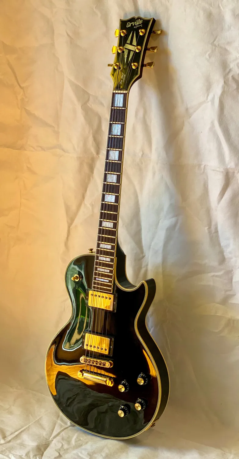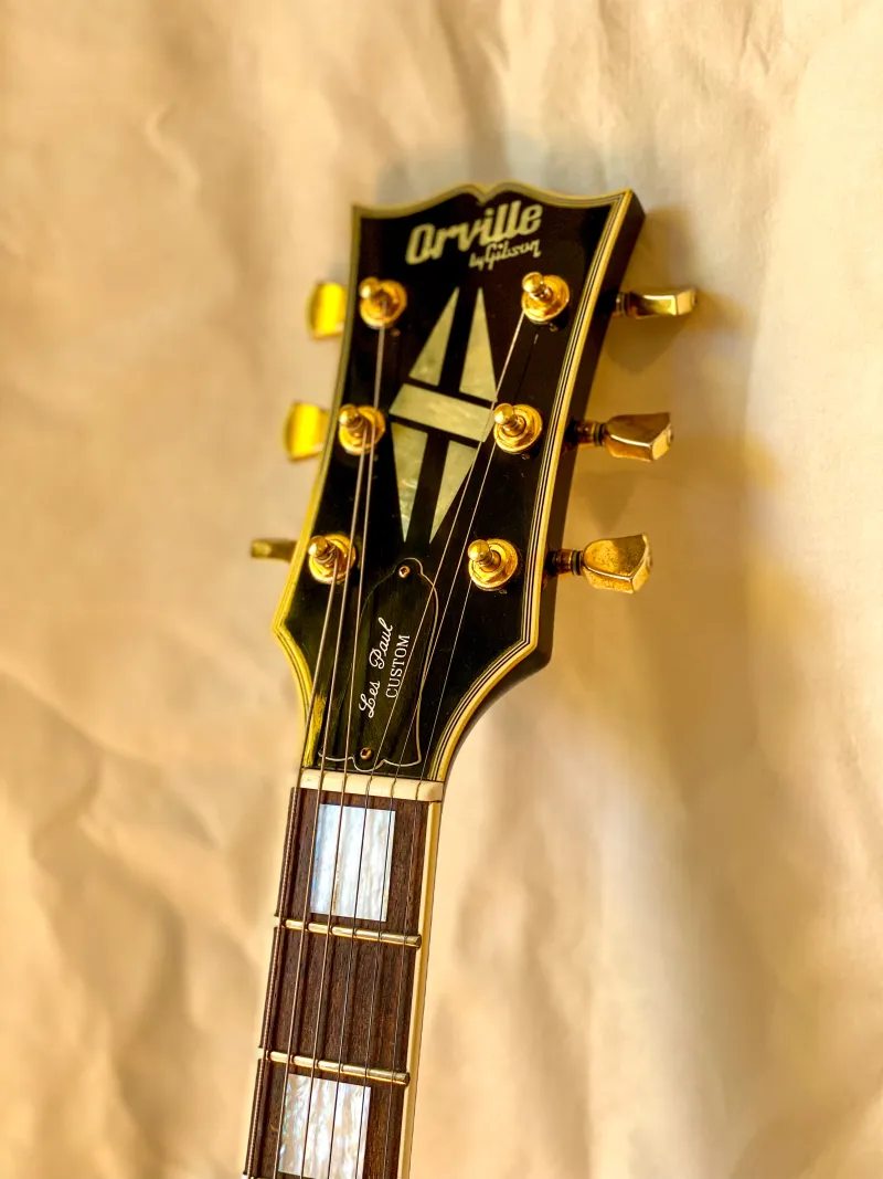 Eladó Orville by Gibson Les Paul Custom gitár 1992-es gyártás, Gibson hardverrel és eredeti Gibson hangszedőkkel HB-R, HB-L, Made in Japan, Vintage 52-ben frissen beállítva, nyak merevítő pálca működik benne. 33 éves hangszer, állapota ennek megfelelő.Mindene eredeti, 4 hang és hangszínszabályzót cseréltem de az eredeti is jár hozzá + koptatólap. Puha tokot tudom adni hozzá, keménytok nincs hozzá.