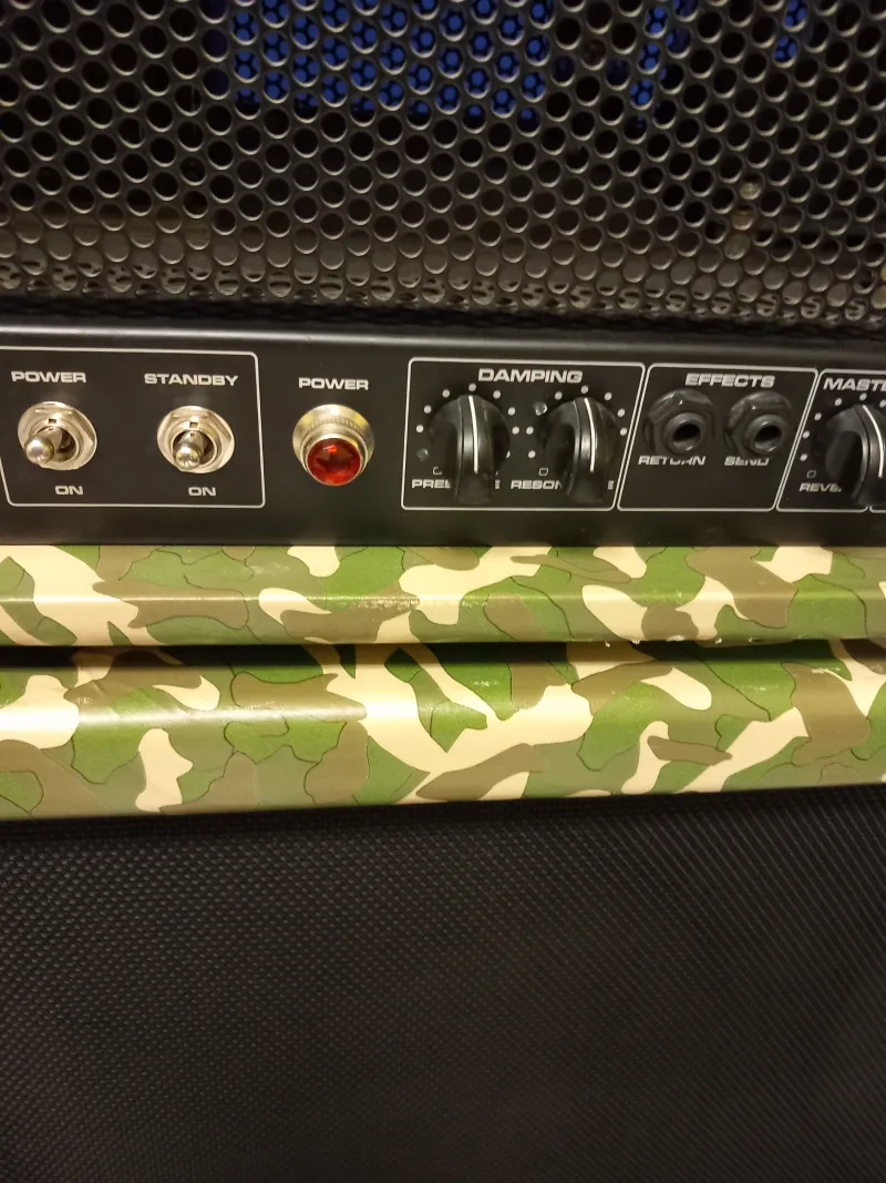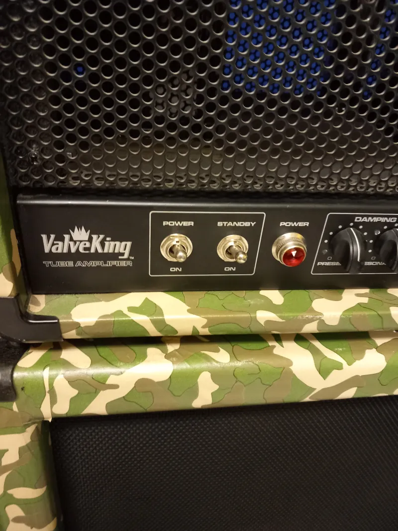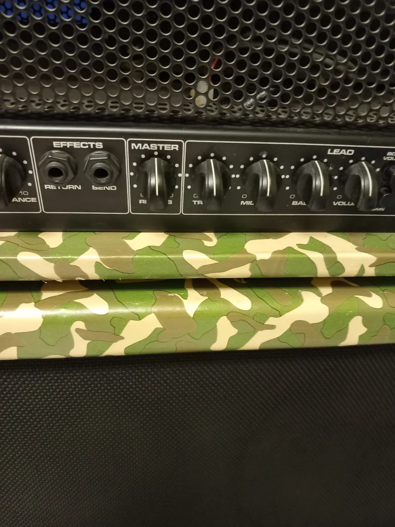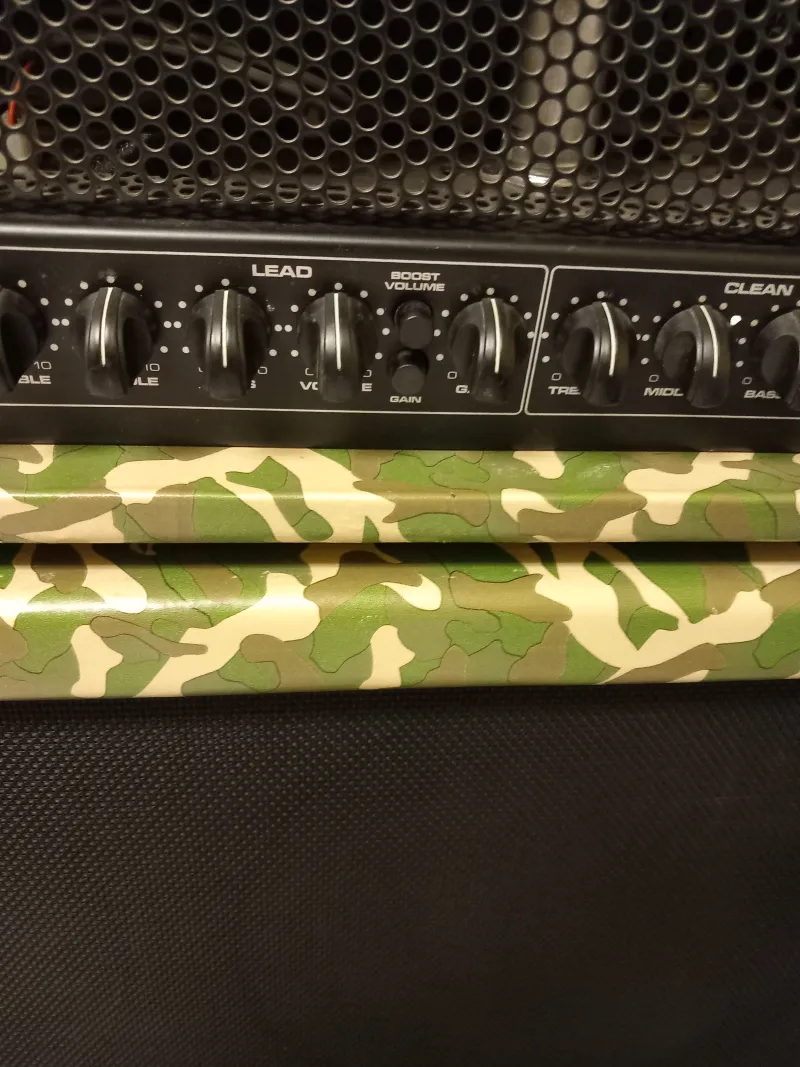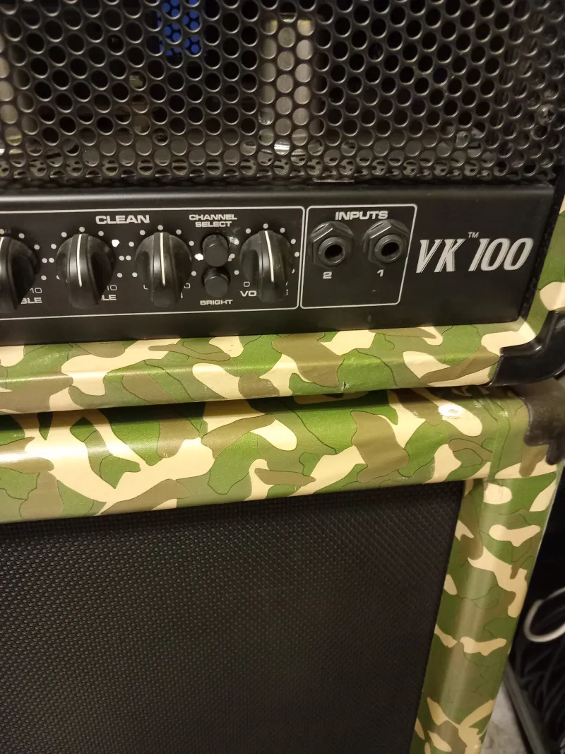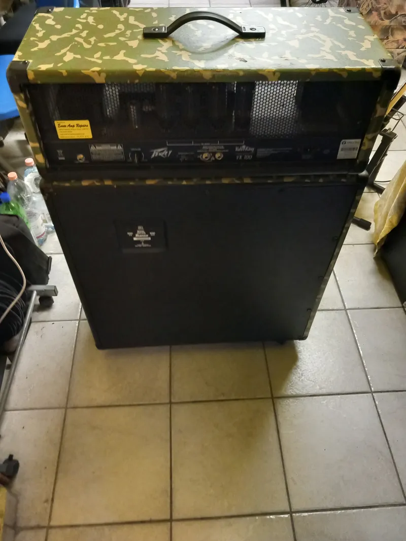 A képeken látható megkímélt állapotú, egyedi terep mintás 6L6GC Sovtek profi csövekkel, kevés órát üzemelt csövekkel lakásban kis hangerővel, bejáratva. Fullcsöves 100.W./ zenei teljesítménye 150W. gitár erősítő fej , Peavey Valveking VK 100, recsegés mentes potencióméterekkel, rugós zengetővel ( Reverb) és egy FS-2-es /tiszta és torzítót csatorna váltó/ lábkapcsolóval eladó.Aki ismeri tudja, hogy széles sávban állíthatók a hangszínek, mindkét csatornán, a hang ereje meg akkora ( ebből fakadóan a dinamikája is ), hogy nagy teremben plusz ki-hangosítás nélkül is a szólógitáros félelmetesen nagy hangerővel, tökéletesen hallatszik, a dobos biztos, nem tudja túl verni a 412 láda jóvoltából. Használható szinte mindenféle zenéléshez (szép hangja van, még alacsony hangerőn is, lehet hozzá bright kiemelőt is használni), a beépített csöves torzítója és a boostja ( szóló kiemelő ) segítségével nagyon kemény hangzások is beállíthatók.