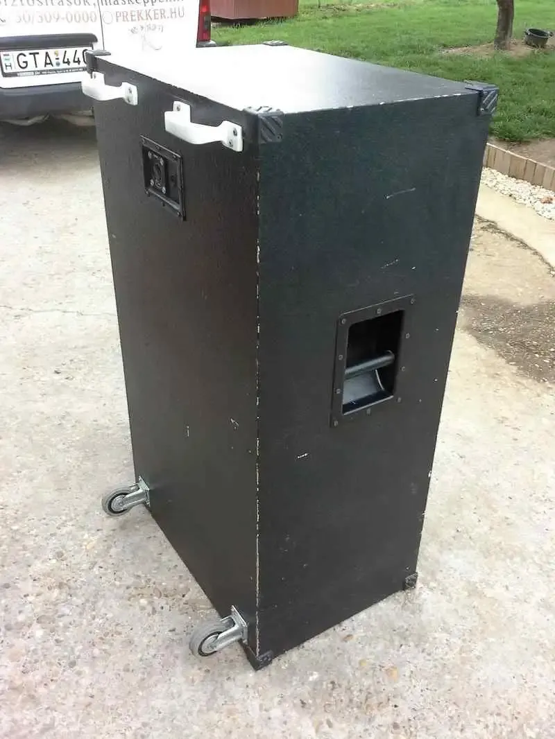 basszus, koncert láda. Alján, hátul kerekekkel és húzható fogantyúval. 60x40x105 cm, 50 kg