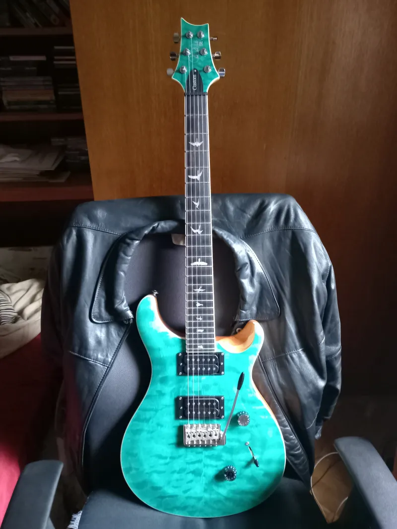 PRS SE Custom 24 Quilt Turquise elektromos gitár eladó!A hátulján van egy lakkrepedés amit fotóztam.