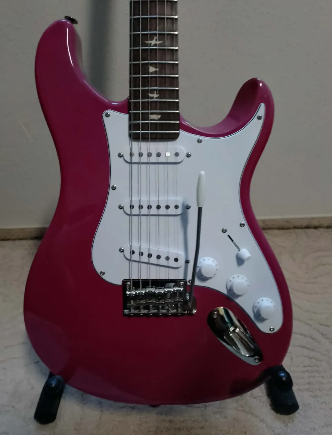 Kihasználatlanság miatt eladó 2023-ban vásárolt PRS SE John Mayer Silver Sky dragon fruit színű gitárom.