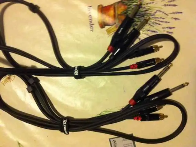 huendeskes High quality AQ 6.3 mm - RCA cable. 1 meter long. Unused. 24 carat gold-plated contacts, expansion-inhibited, continuous shielding ring, stylish connectors. There are 2 pieces, i.e. one pair. The price is per piece, but you can negotiate for two. (Not much.)