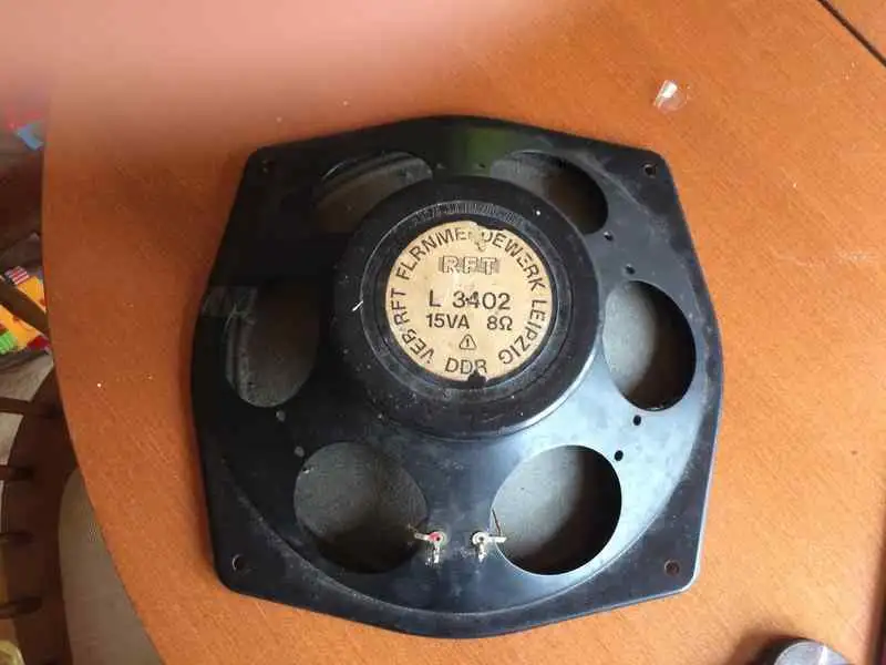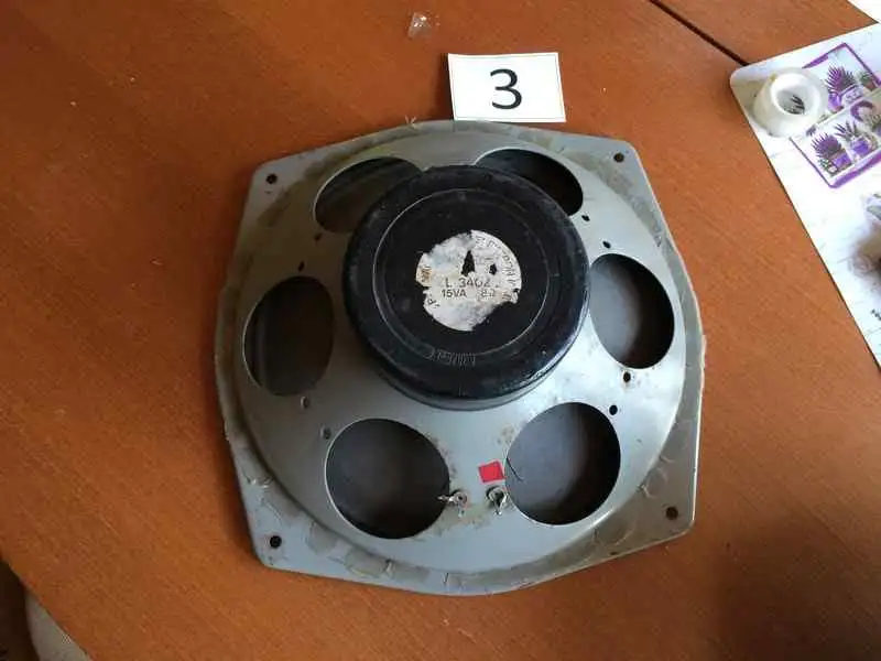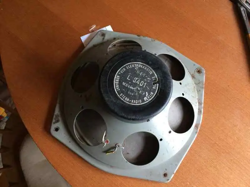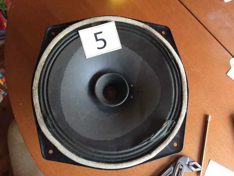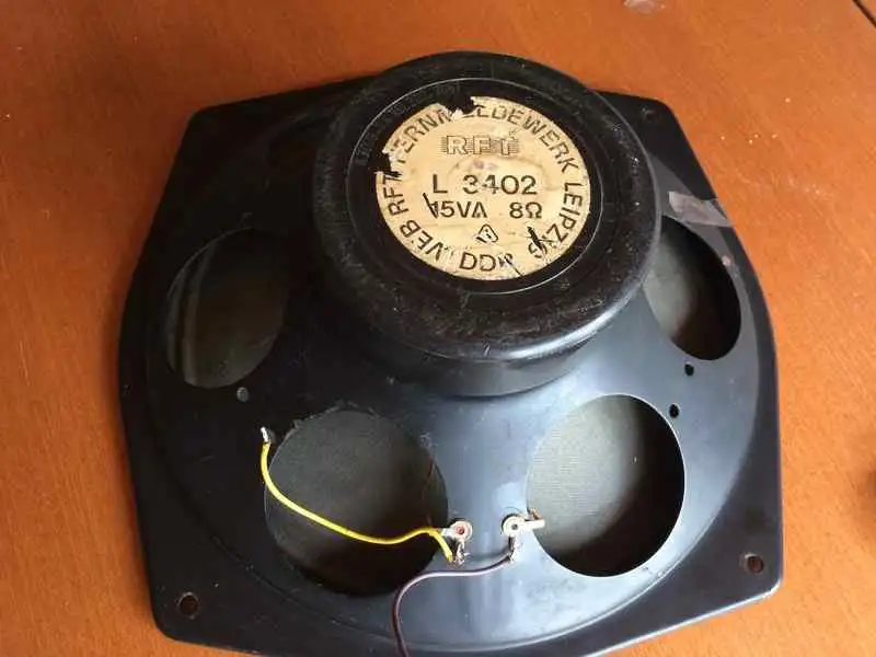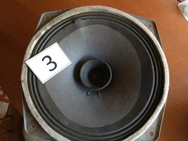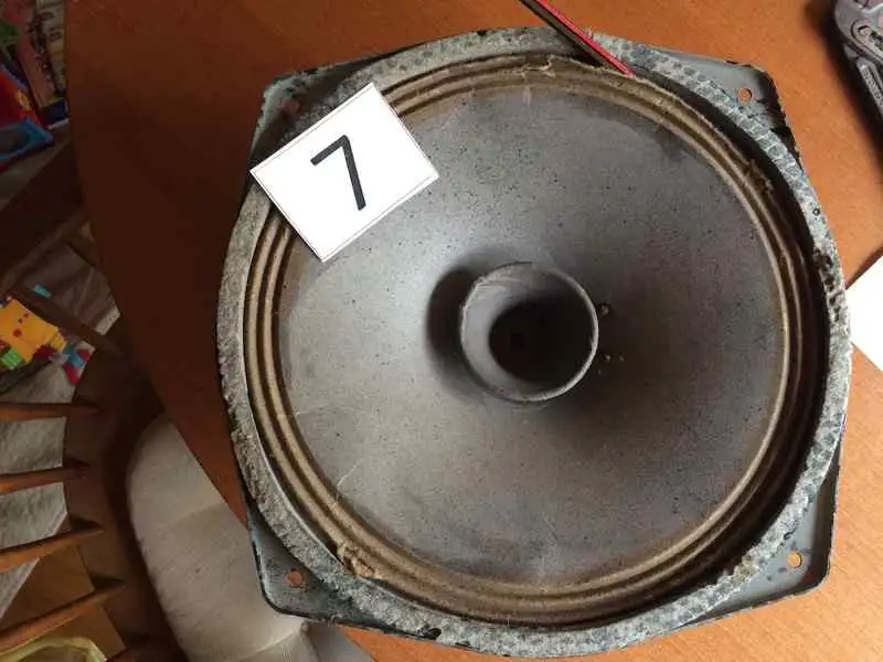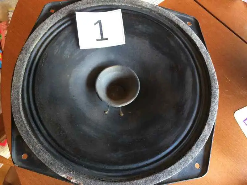 Cone, voice coil missing, frame damaged, winding burnt out, doesn't make sound.