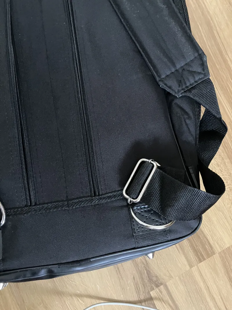 2 függőleges rekesz a hátoldalon, 6 mm széles cipzárral a hátizsák pántjainak tárolására